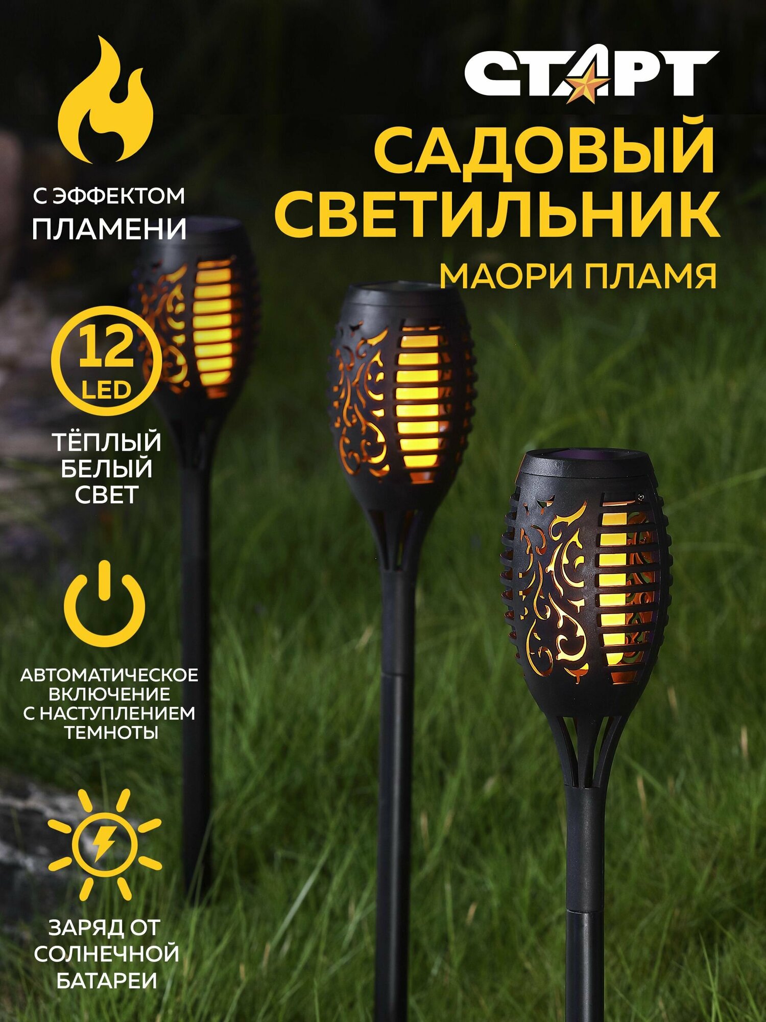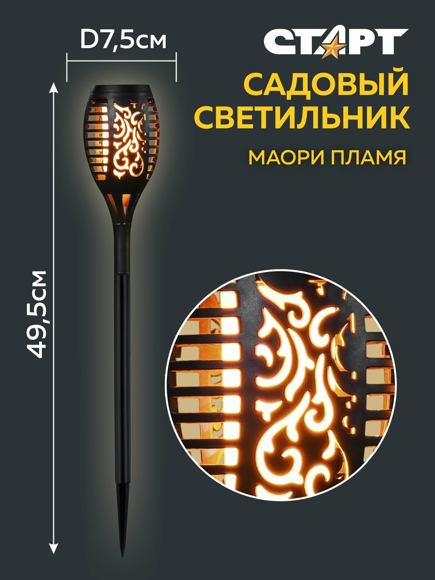 Светильник на солнечной бат. "Старт", "Маори" 7.5x49.5 см, IP44, 12 LED, эфф. огня, Т/белый информация: