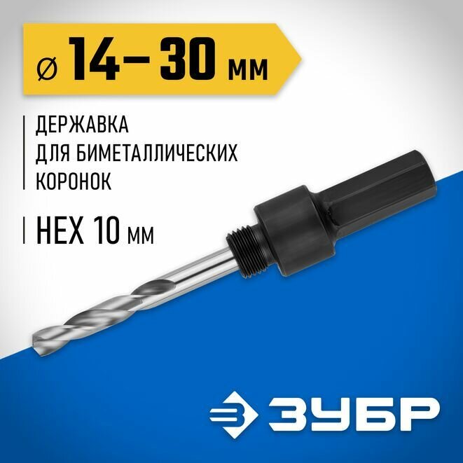 Державка для биметаллических коронок, ЗУБР 14-30 мм, шестигранный хвостовик информация: