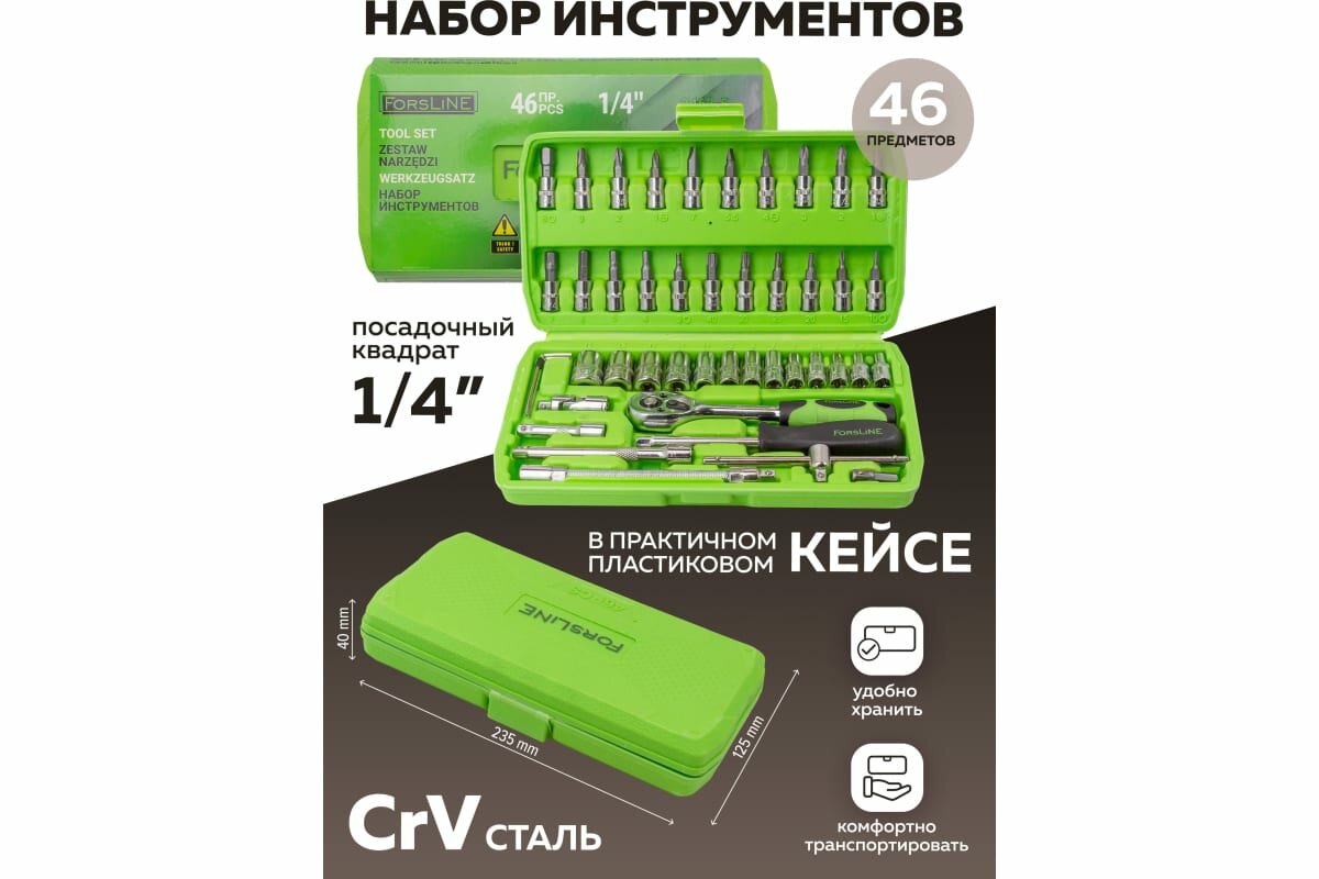 Набор инструмента 46пр. 1/4''(6-гран.)(4-14мм) информация: