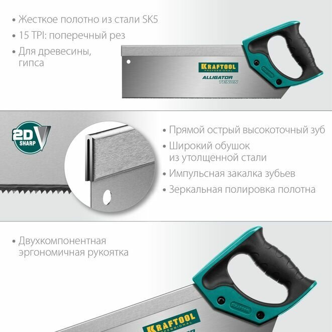Ножовка с обушком для стусла Alligator Tenon 15 KRAFTOOL 15 TPI, 300 мм информация: