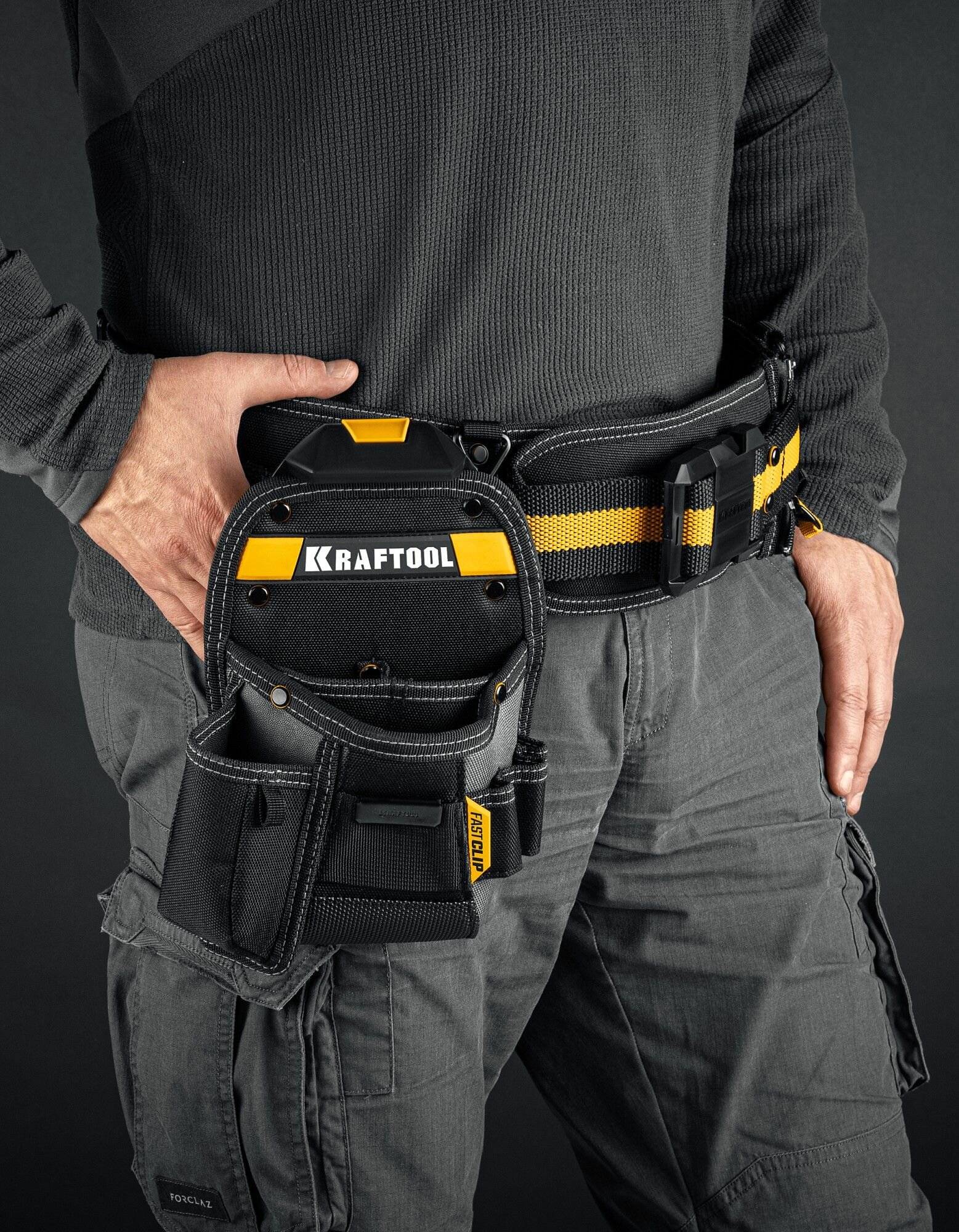 Кобура для компактного шуруповерта KRAFTOOL KH-5C с быстросъёмным креплением FastClip, 5 карманов и петель (38770)