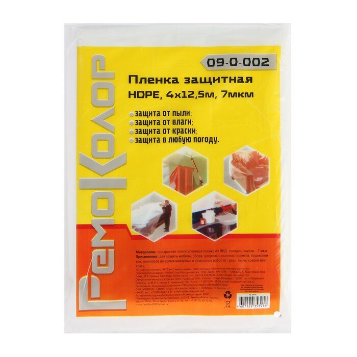 Remocolor Пленка защитная полиэтиленовая, прозрачная, HDPE, 4х12,5м, толщина 7мкм информация: