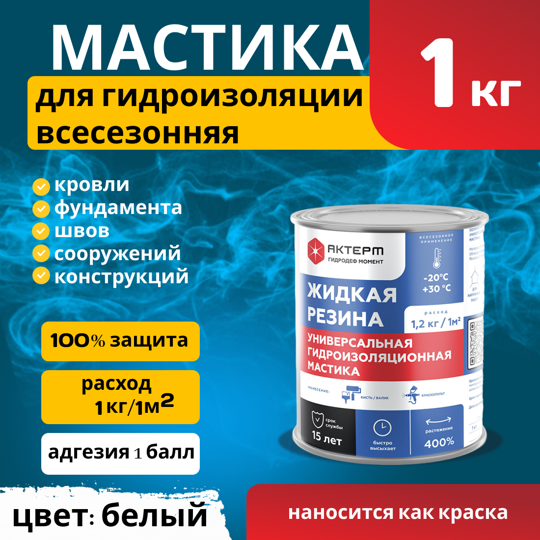 Жидкая резина белая 1кг гидроизоляционная мастика полимерная для внешних работ, ГидроДеф Момент актерм информация: