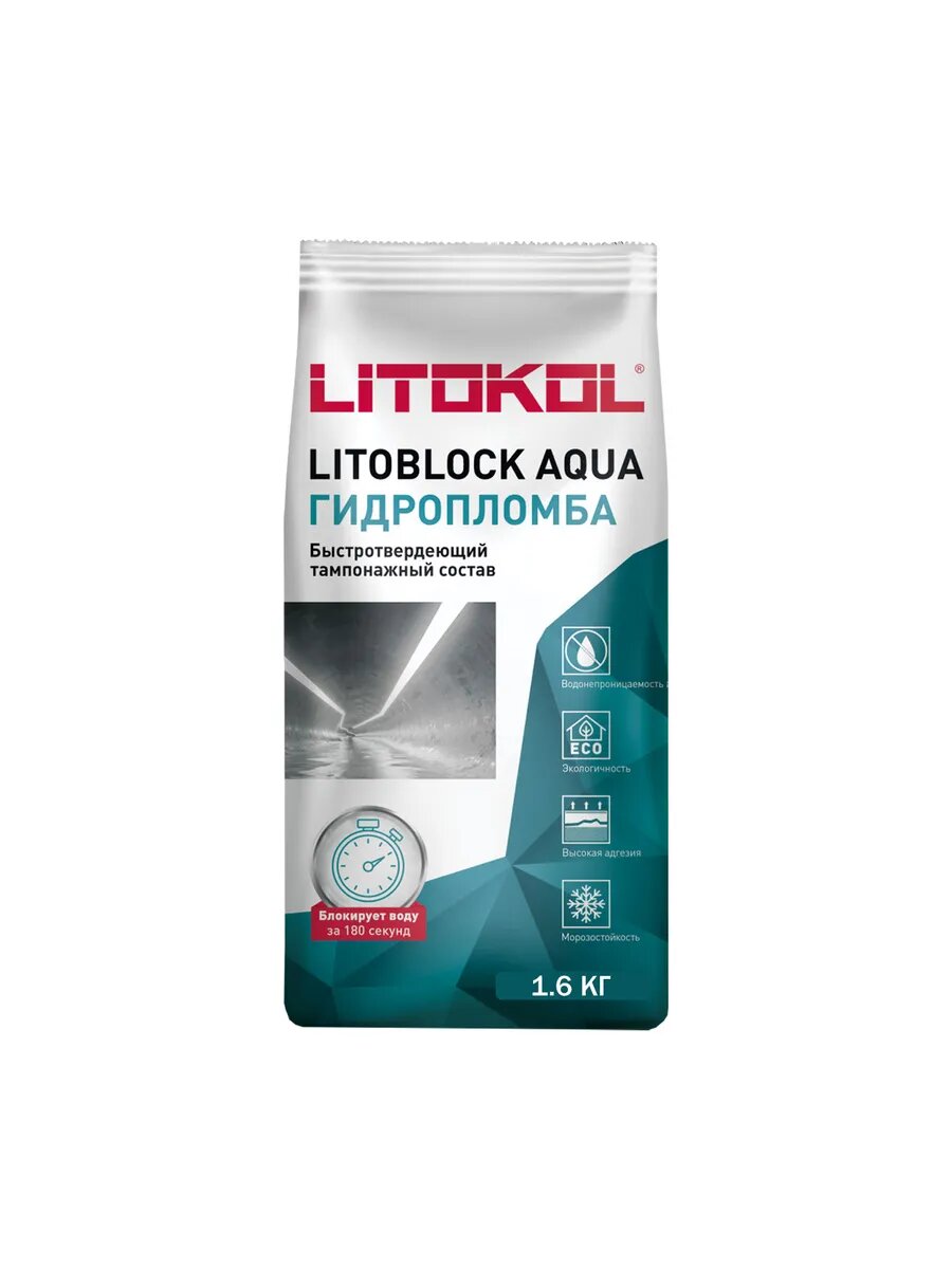Быстротвердеющая гидропломба LITOKOL LITOBLOCK AQUA 1.6 кг 775 ₽