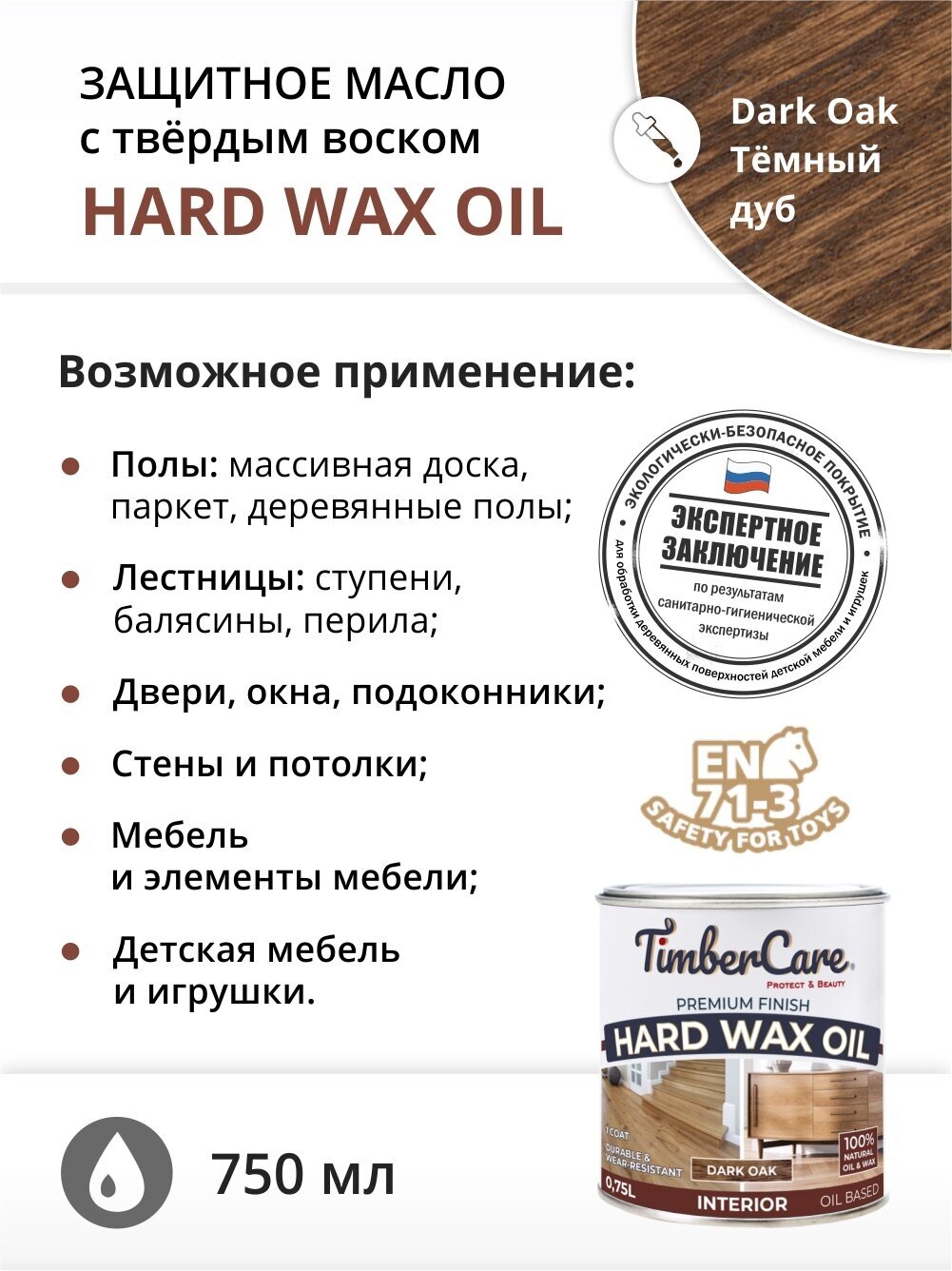 Защитное масло с твердым воском TimberCare Hard Wax Oil 750 мл Темный дуб 350068 информация: