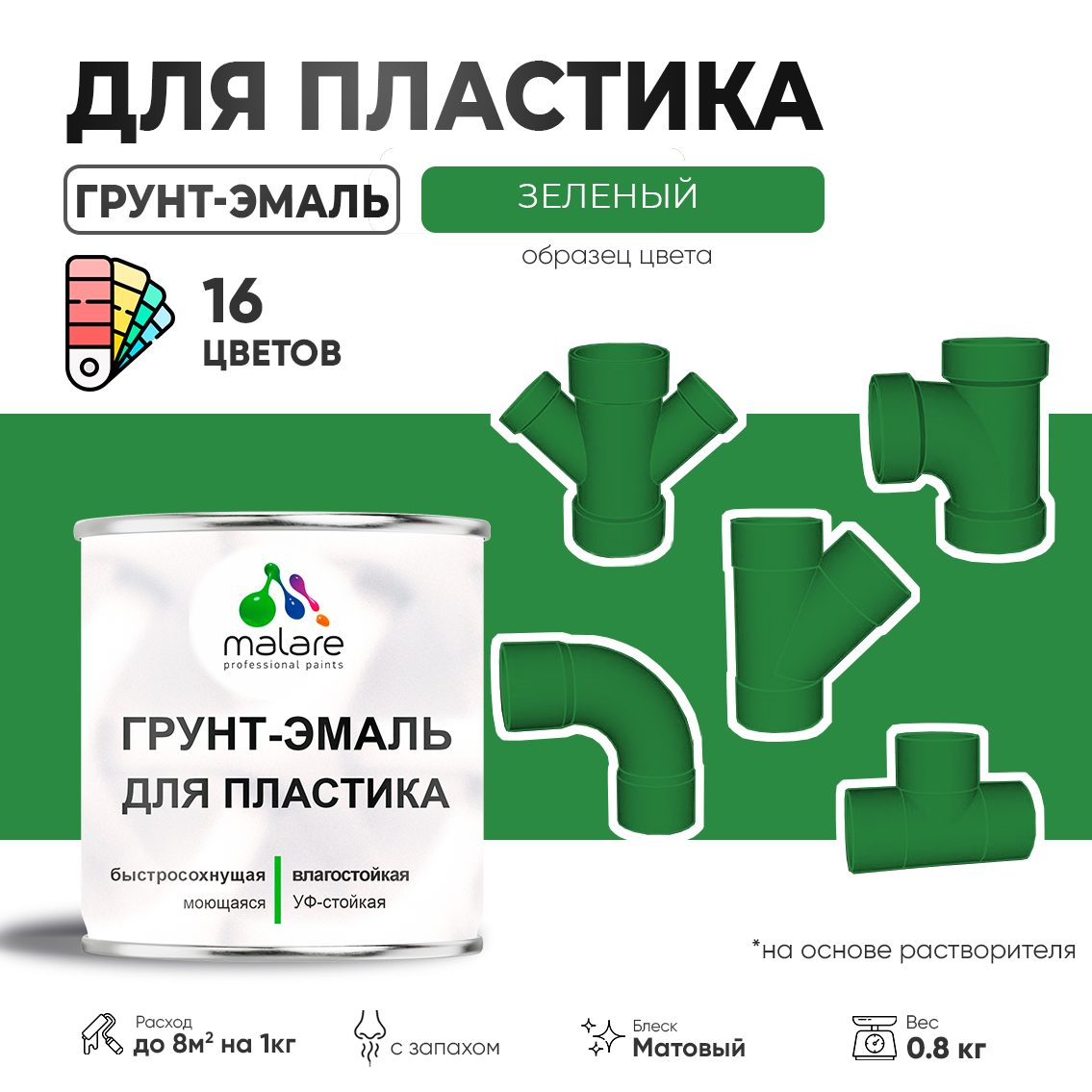 Грунт-Эмаль, Краска Malare 3 в 1 для пластика, окон и подоконников, сайдинга, быстросохнущая, матовый, зеленый, 0.8 кг. информация: