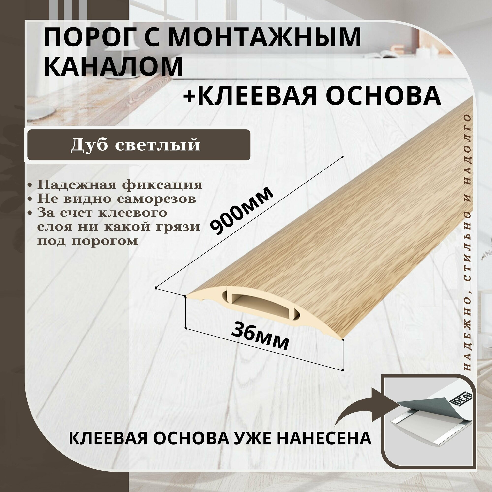 Порог с монтажным каналом, 212 Дуб светлый, пластиковый, 36x900 мм, 1 шт. информация: