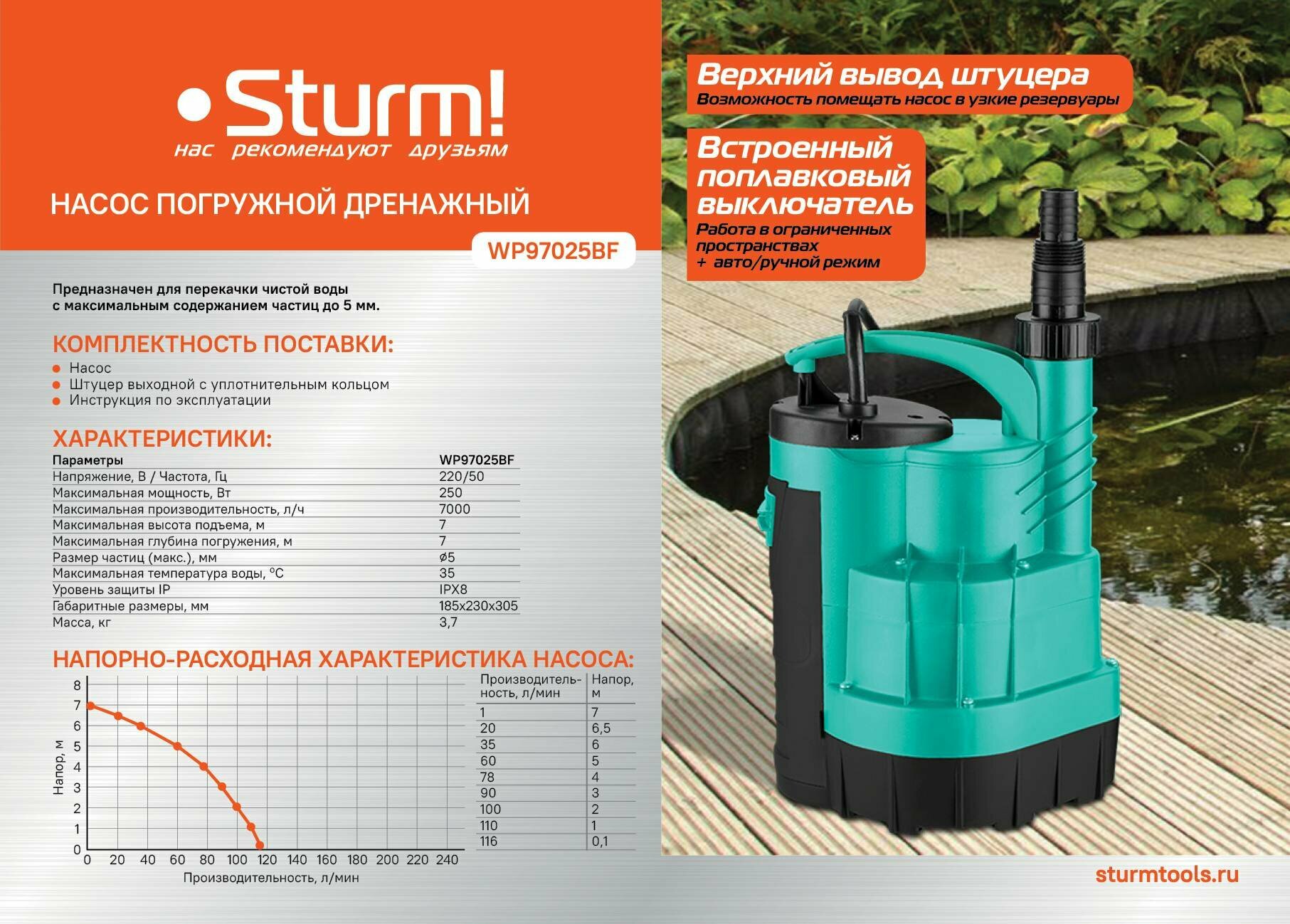 Насос погружной дренажный Sturm! арт. WP97025BF информация:
