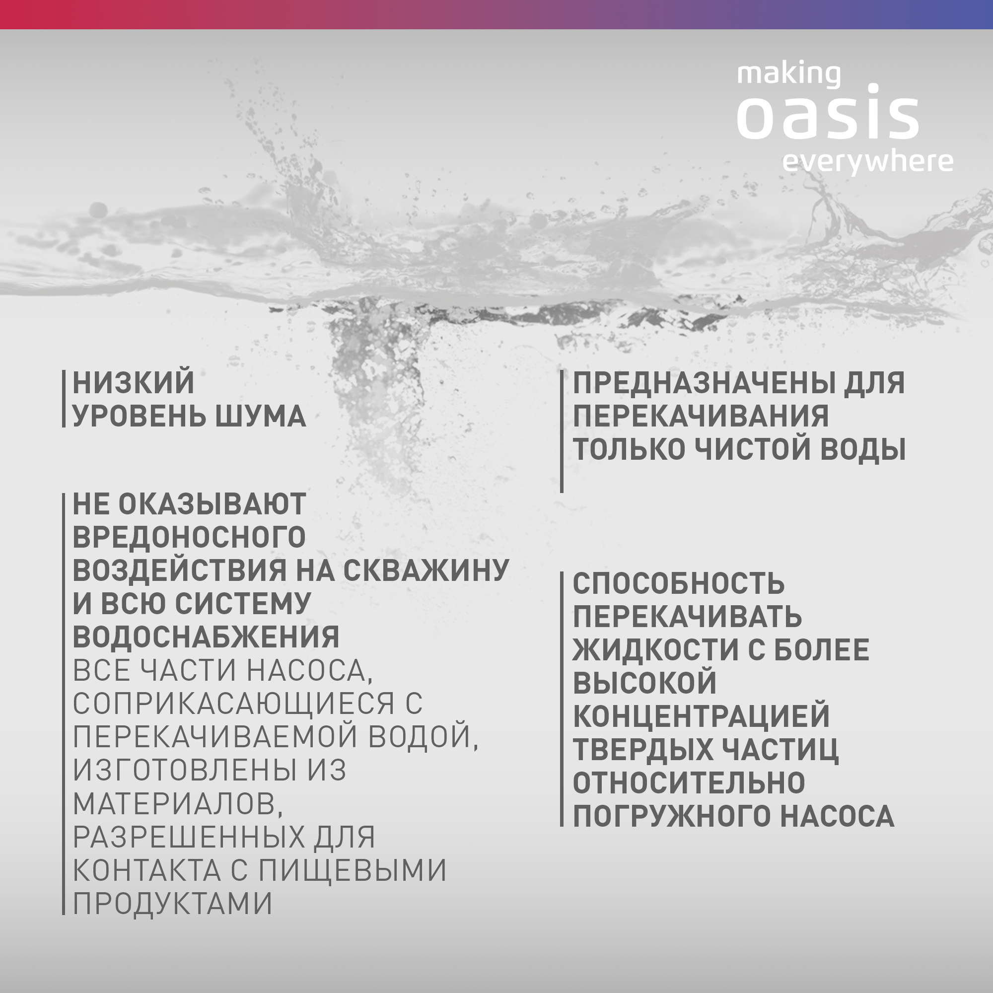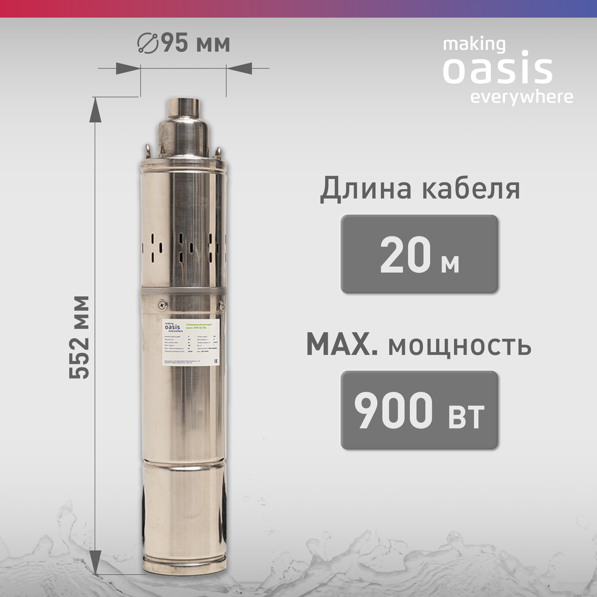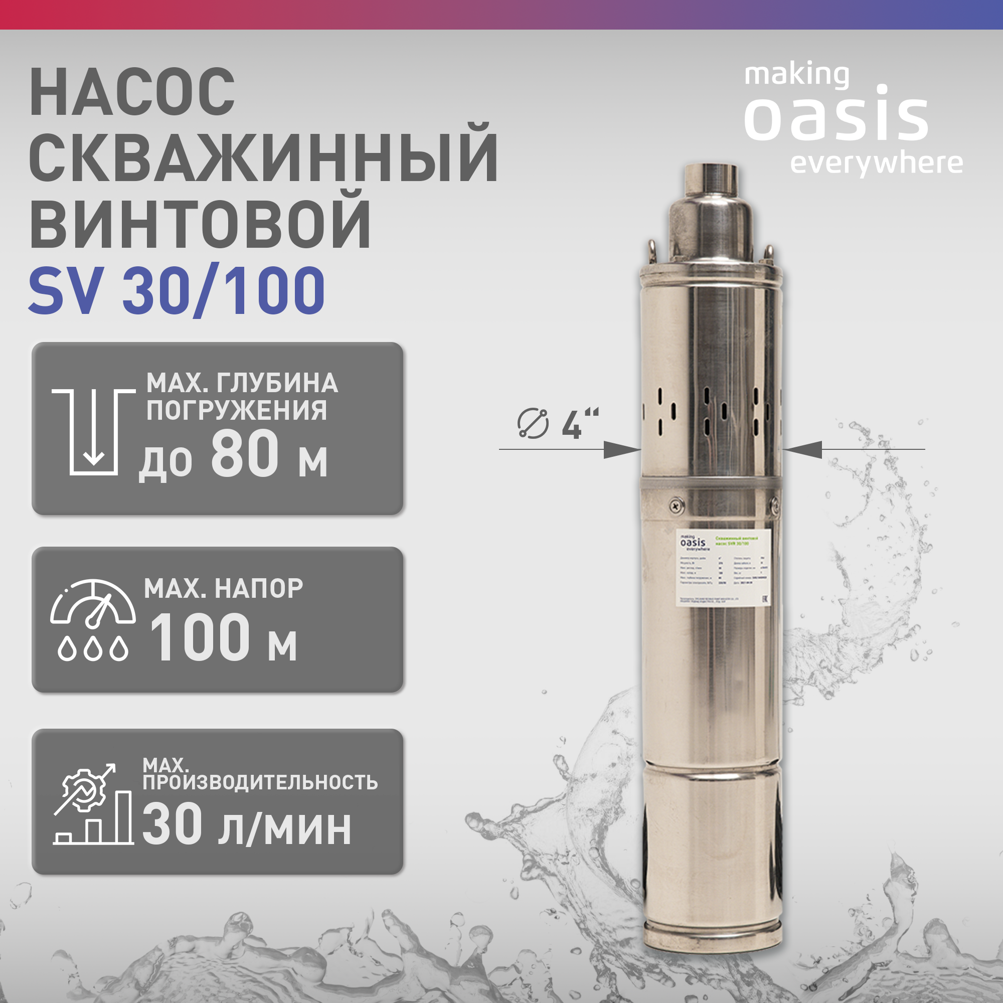 Насос погружной скважинный для воды making Oasis everywhere SV 30/100, водяной для колодца, для перекачки информация: