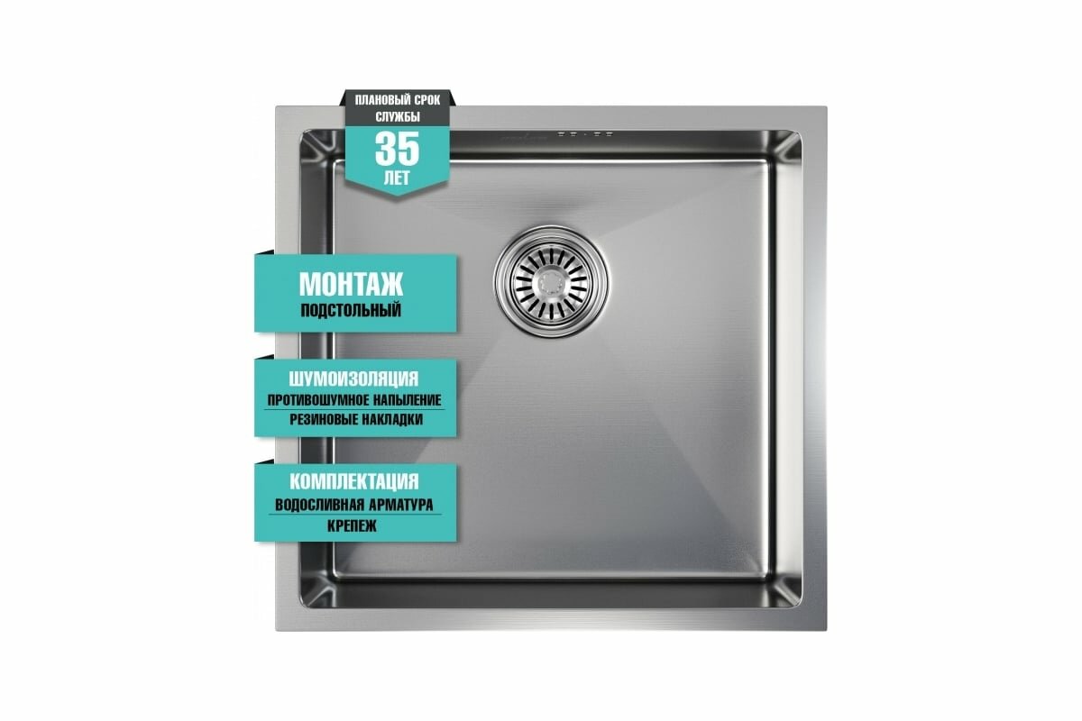 Mixline Мойка подст.монтаж 45x42 3,0 вып 3 1/2 PRO 20см с сифоном сатин 548564 информация: