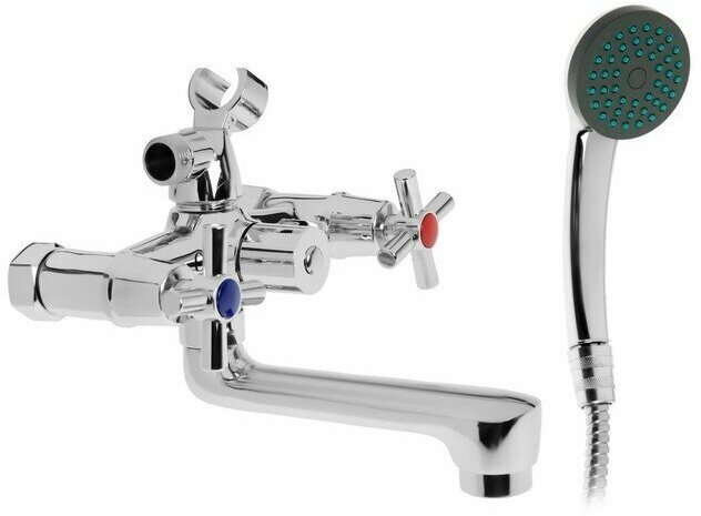 Смеситель для ванны ZEIN econom, кран-букса 1/2", излив 30 см, с душевым набором, хром