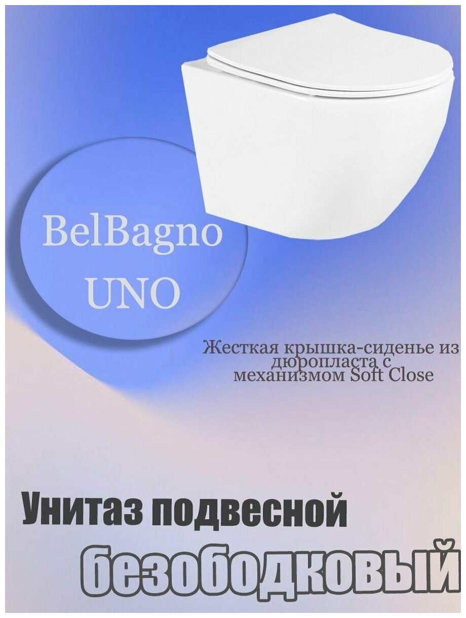 Унитаз BelBagno Uno BB3105CHR/SC подвесной, с сиденьем микролифт, цвет белый