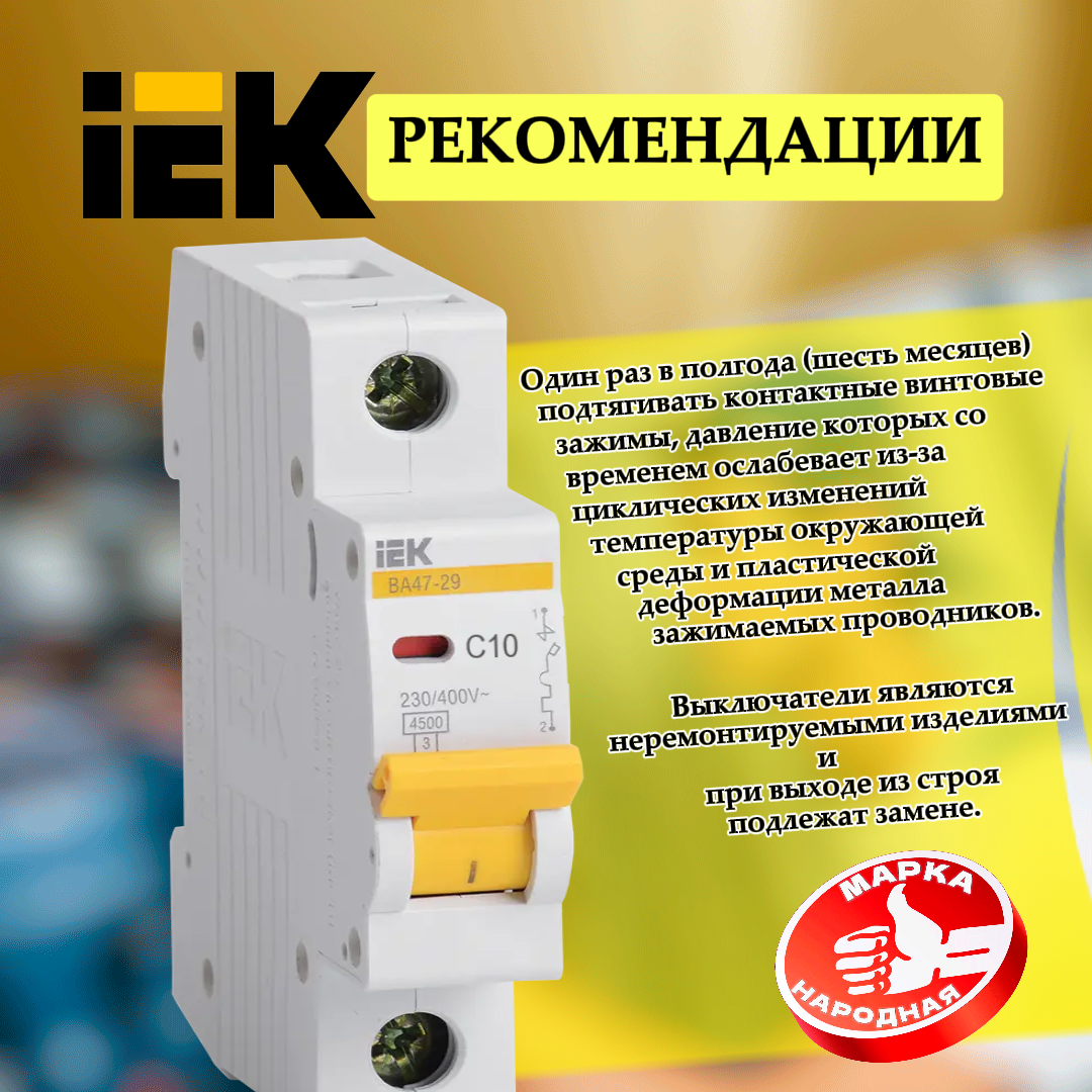 Отзывы на (3 шт.) Выключатель автоматический модульный 1п C 10А 4.5кА ВА47-29 IEK MVA20-1-010-C-3.VE24RU.TR1