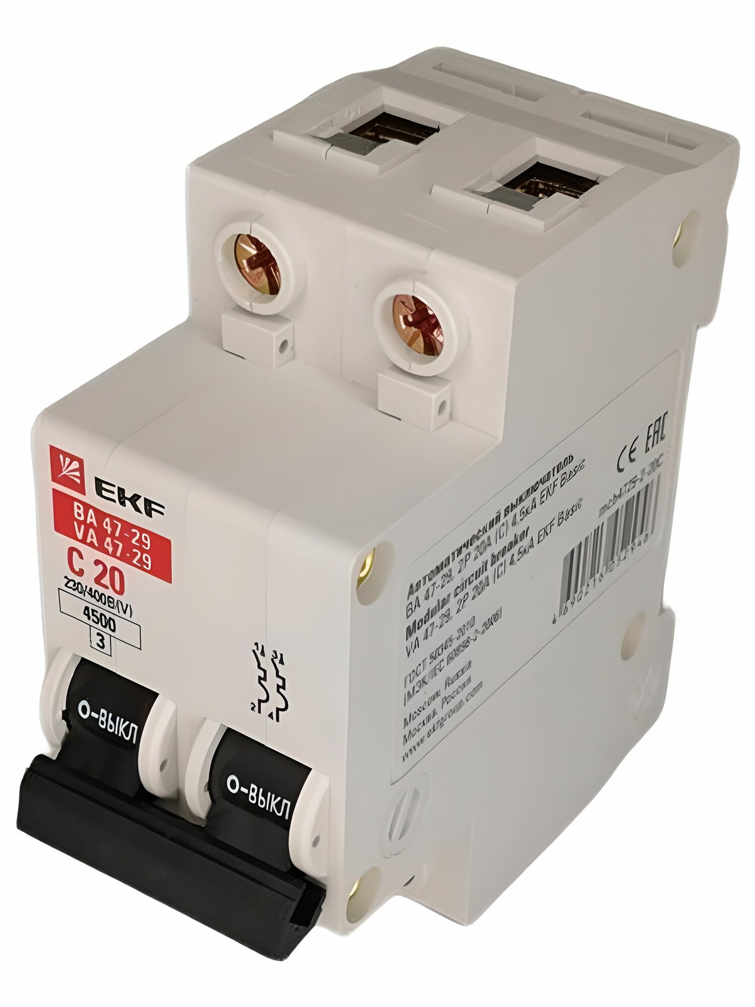 Автоматический выключатель 2P 20А (C) 4,5кА ВА 47-29 Basic информация: