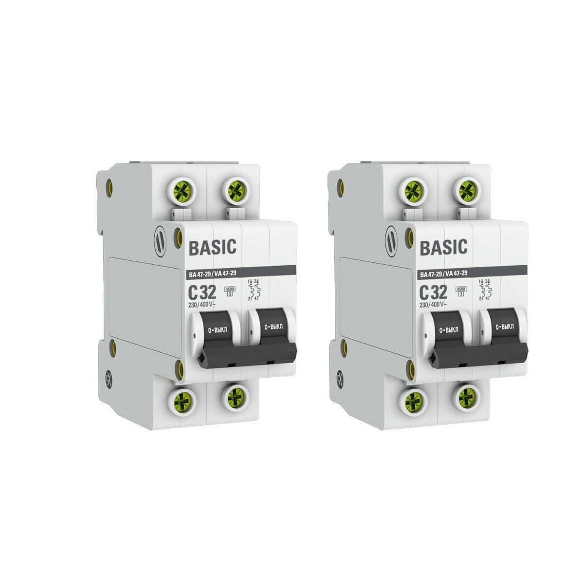 Выключатель автоматический 2-полюсный (2P) 32А C 4.5кА ВА47-29 Basic EKF (комплект 2 шт)