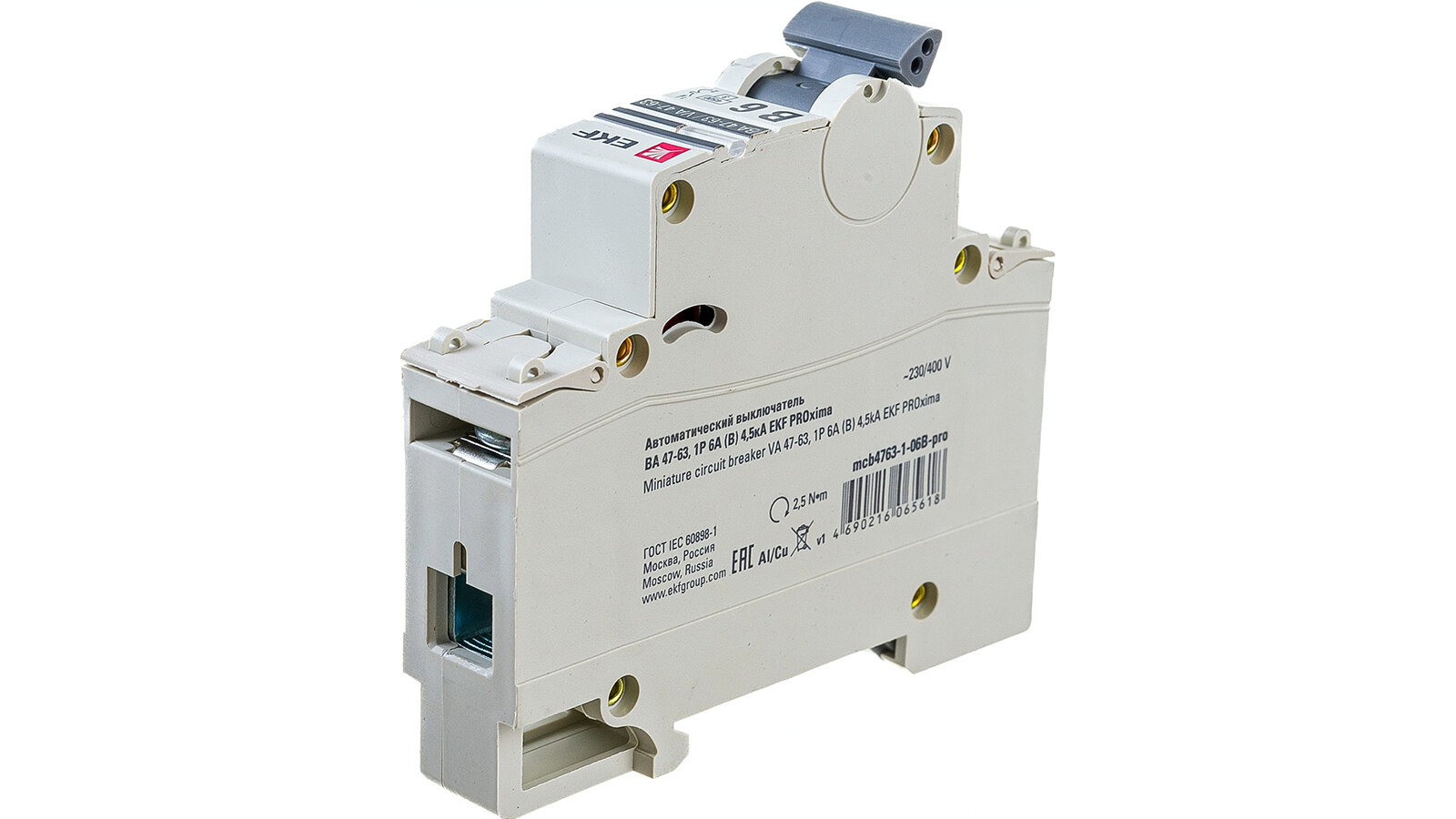 Выключатель автоматический однополюсный 6А С ВА47-63 4.5кА PROxima информация: