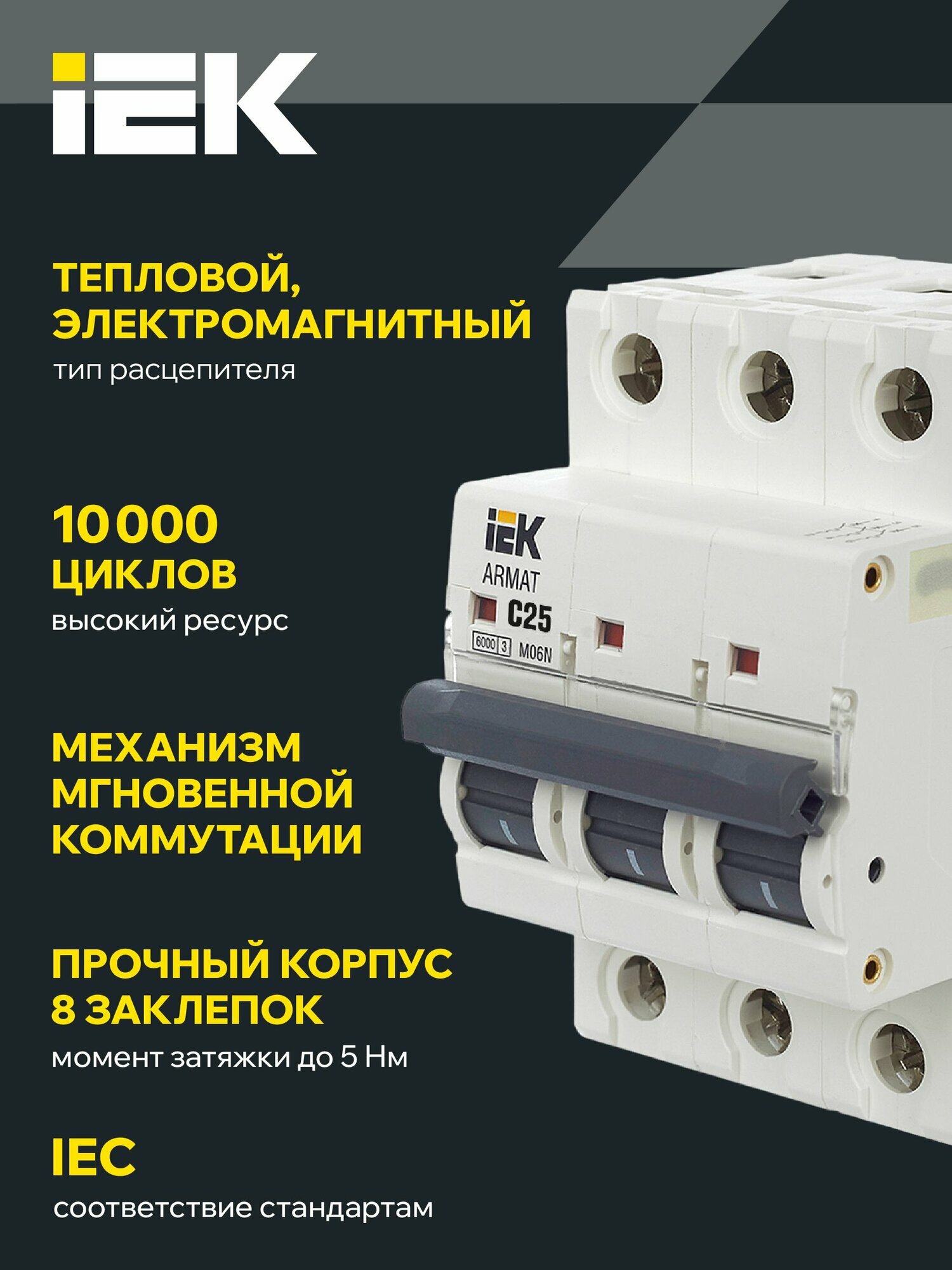 Автоматический выключатель Iek 3п C 50А M06N ARMAT, AR-M06N-3-C050