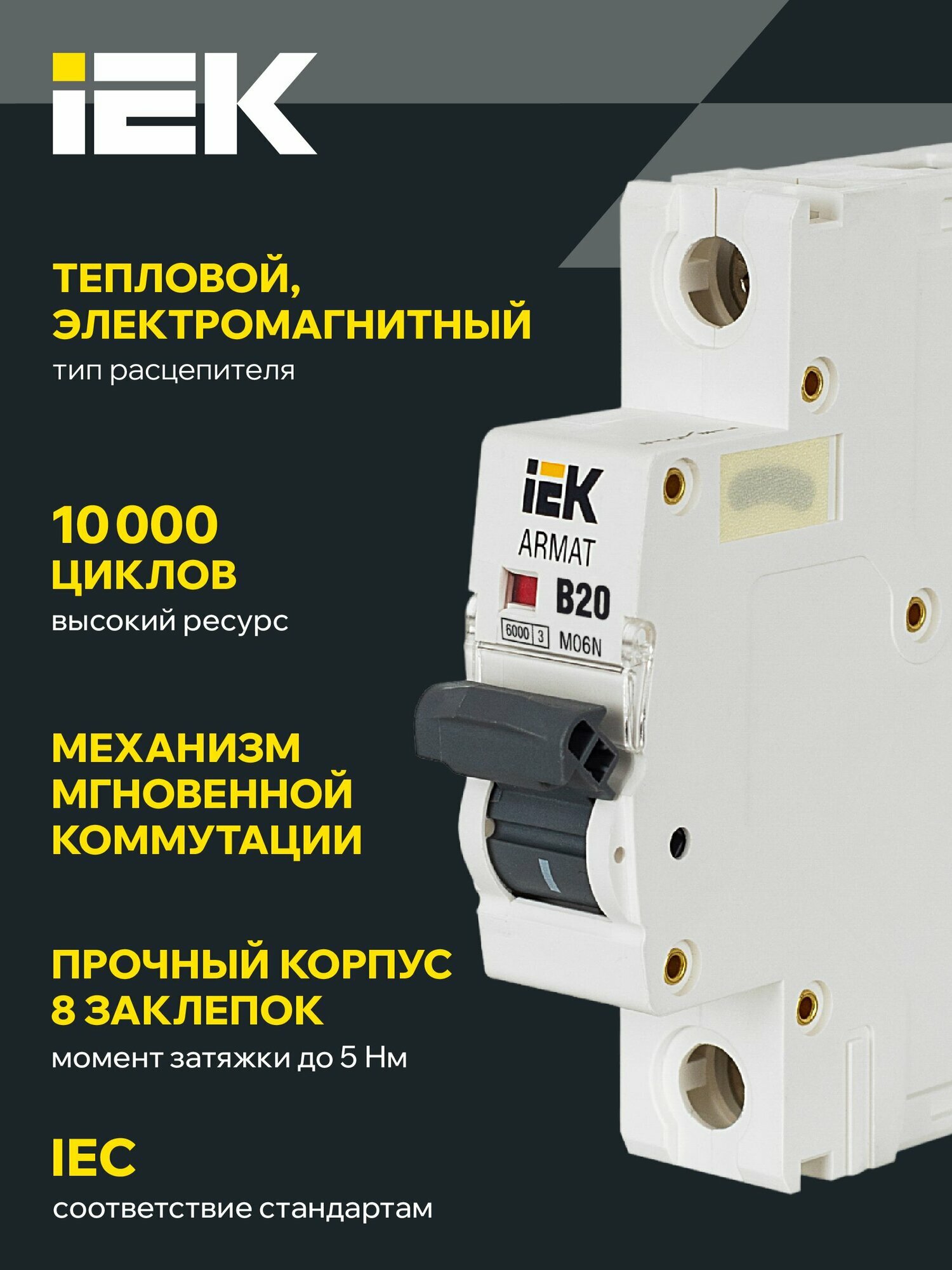 ARMAT Авт. выкл. M06N 1P B 20А, IEK ARM06N1B020 (1 шт.) информация: