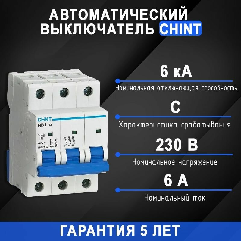 CHINT Авт. выкл. NB1-63 3P 6A 6кА х-ка C (R) информация: