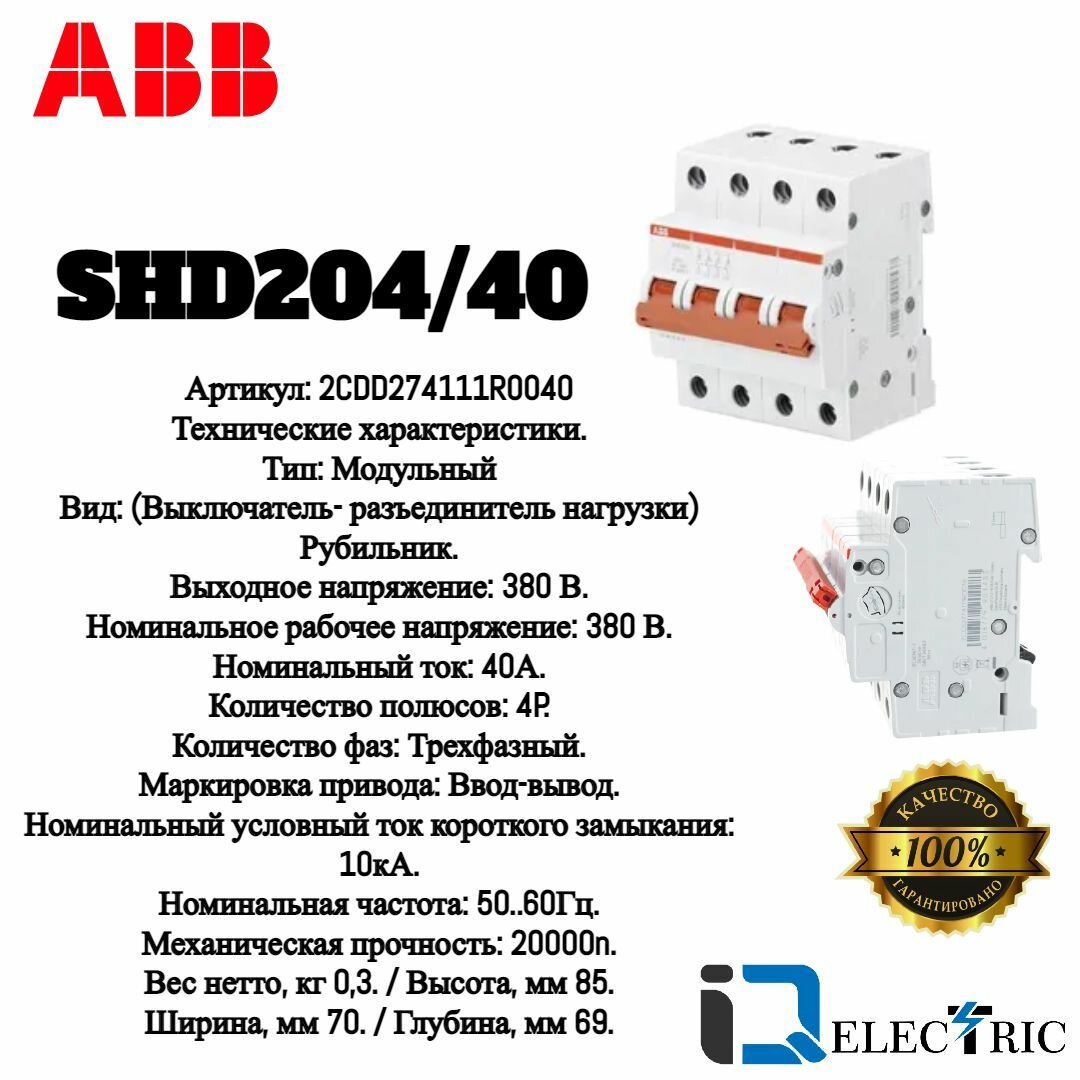 Отзывы на Рубильник модульный 4П ABB SHD204/40 красный рычаг 2CDD274111R0040