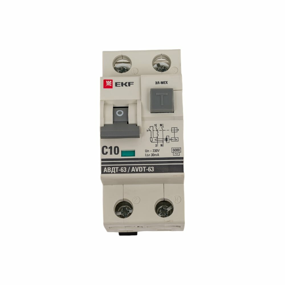 EKF Дифференциальный автомат АВДТ-63 10А/30мА (характеристика C, эл-мех, тип АС) 6кА PROxima арт. DA63-10-30-AC