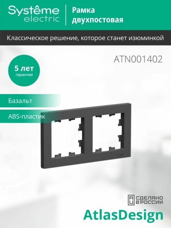 10 цен на Systeme Electric AtlasDesign Базальт Рамка 2-ая, универсальная ATN001402