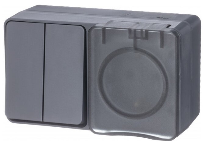 Блок выключатель + розетка уличная IP54, пылевлагозащищенная электрическая 2-клавишная Schneider Electric (Systeme Electric) Atlas Design с заземлением, с защитными шторкми, 16А, Антрацит - 2 шт. 4 693 ₽