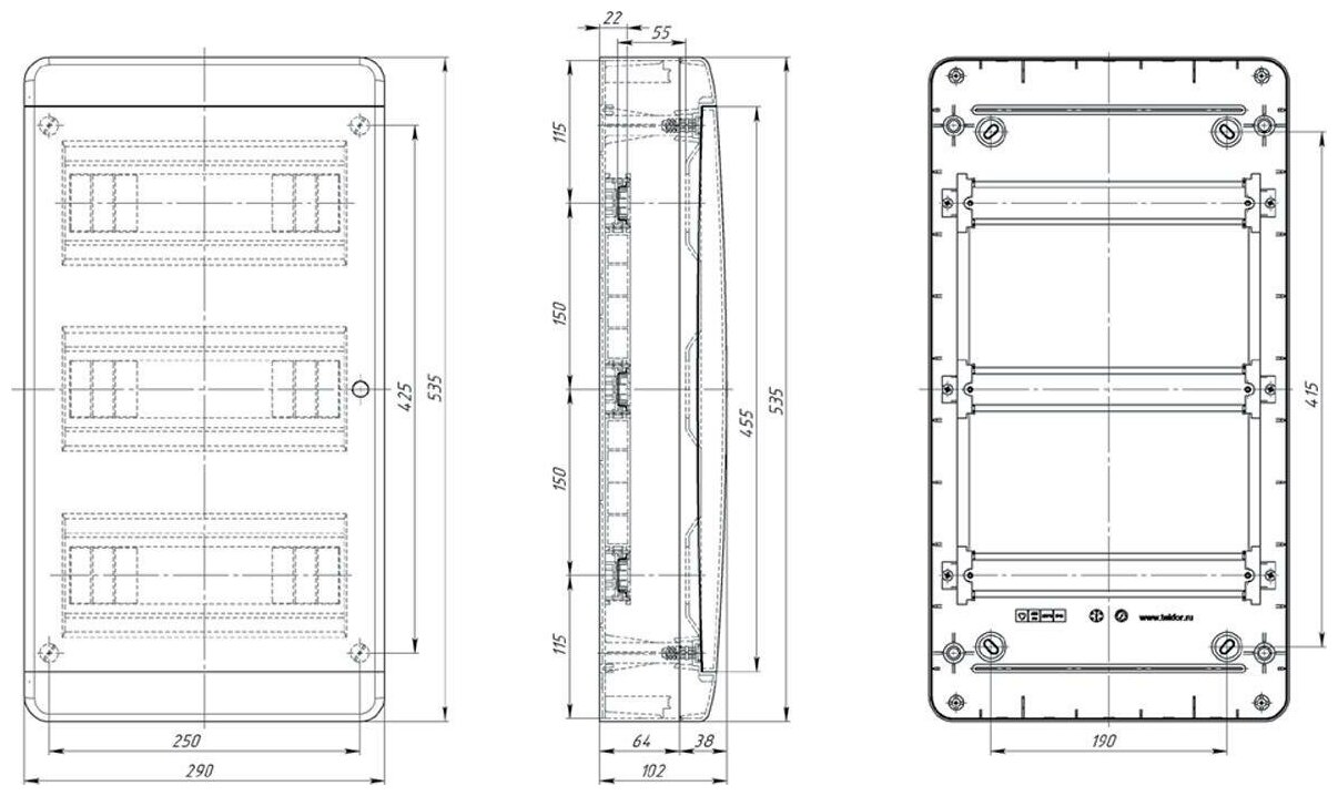 | Дополнительная информация | дверца имеет возможность установки замка; класс электроизоляции II; материал самозатухающий термопластик, обладающий стойкостью к воспламенению при воздействии нагретой до температуры 650°С проволокой (испытание по ГОСТ 27483 (МЭК 60 695-2-1)); рабочие температуры от –25…+60 °С; межосевое расстояние между рядами 150 мм; максимальная высота модульных устройств для установки в щит 53 мм; используемый размер оцинкованной DIN-рейки 35×7,5 мм; щиты изготавливаются согласно стандарта ГОСТ Р 50827 (МЭК 670) |