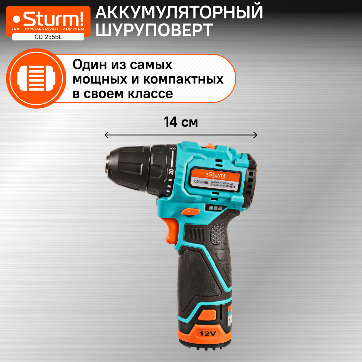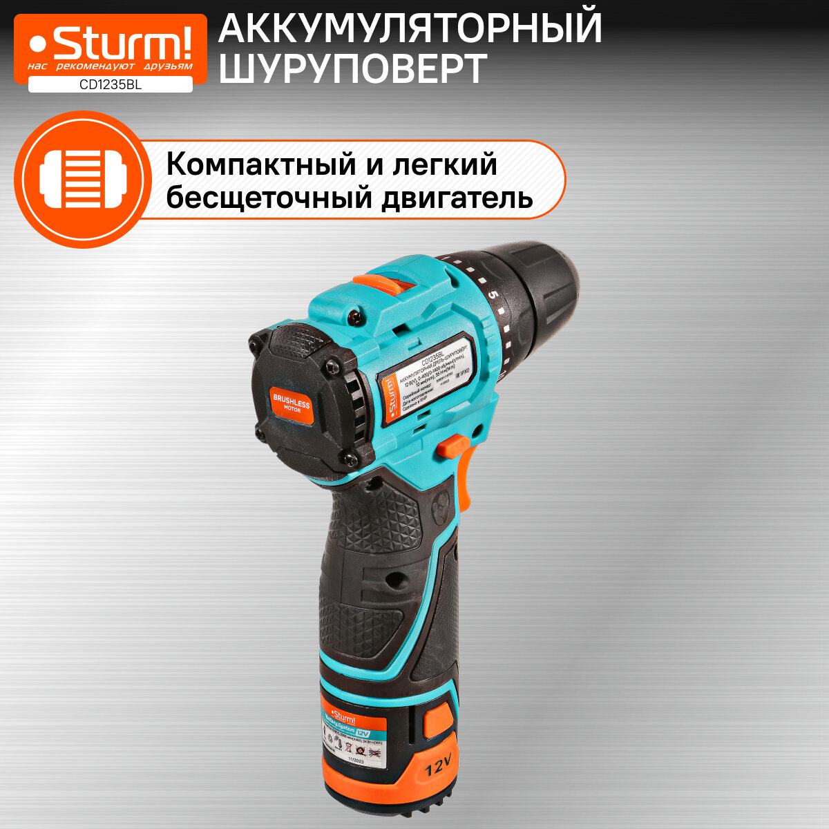 Аккумуляторный шуруповерт Sturm! CD1235BL 1BatterySystem12V информация: