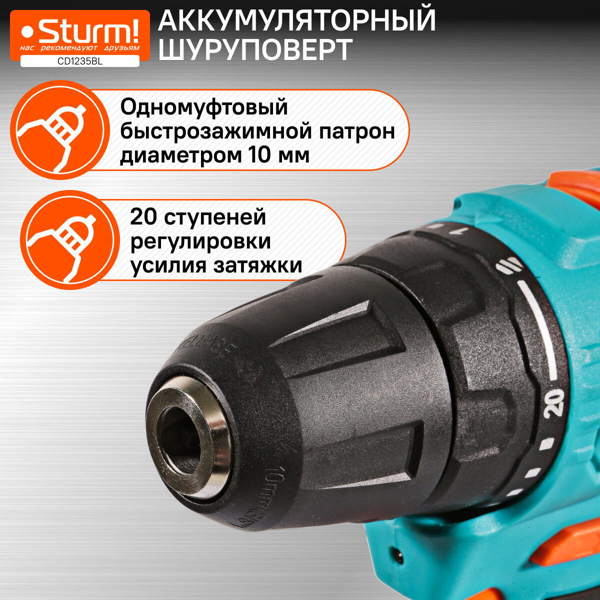 10 цен на Аккумуляторный шуруповерт Sturm! CD1235BL 1BatterySystem12V