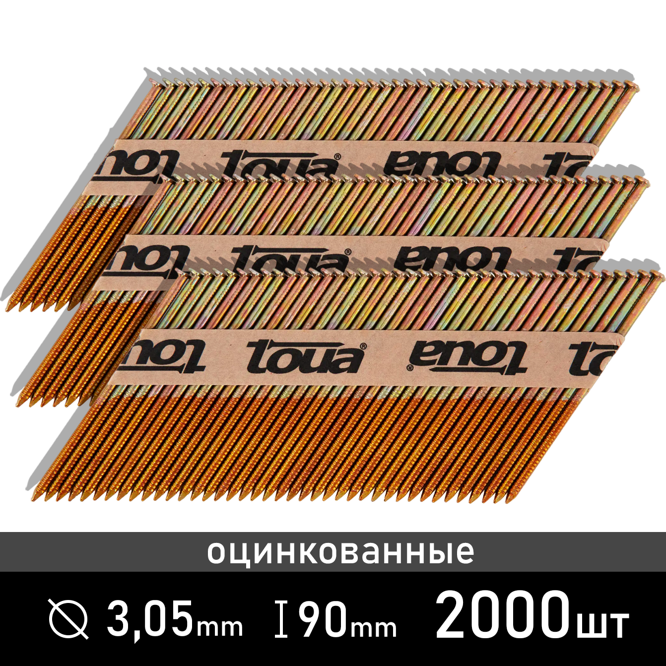 Гвозди реечные Toua для гвоздезабивного пистолета 3,05х90 мм оцинкованные ершеные (2000 шт.)
