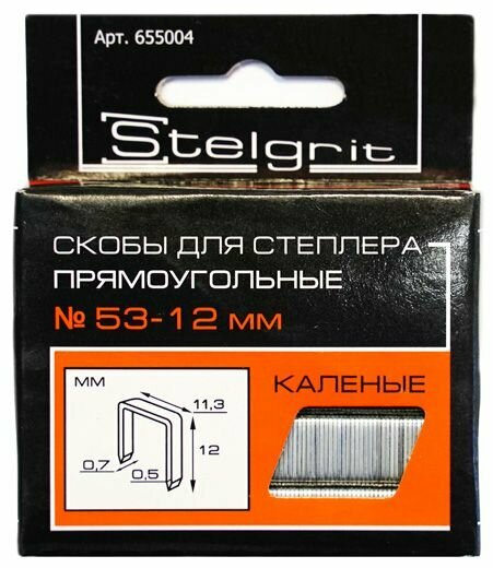 Скобы для степлера тип 53 Stelgrit 6x0,7 мм, мебельные, каленые 1000 шт./уп.