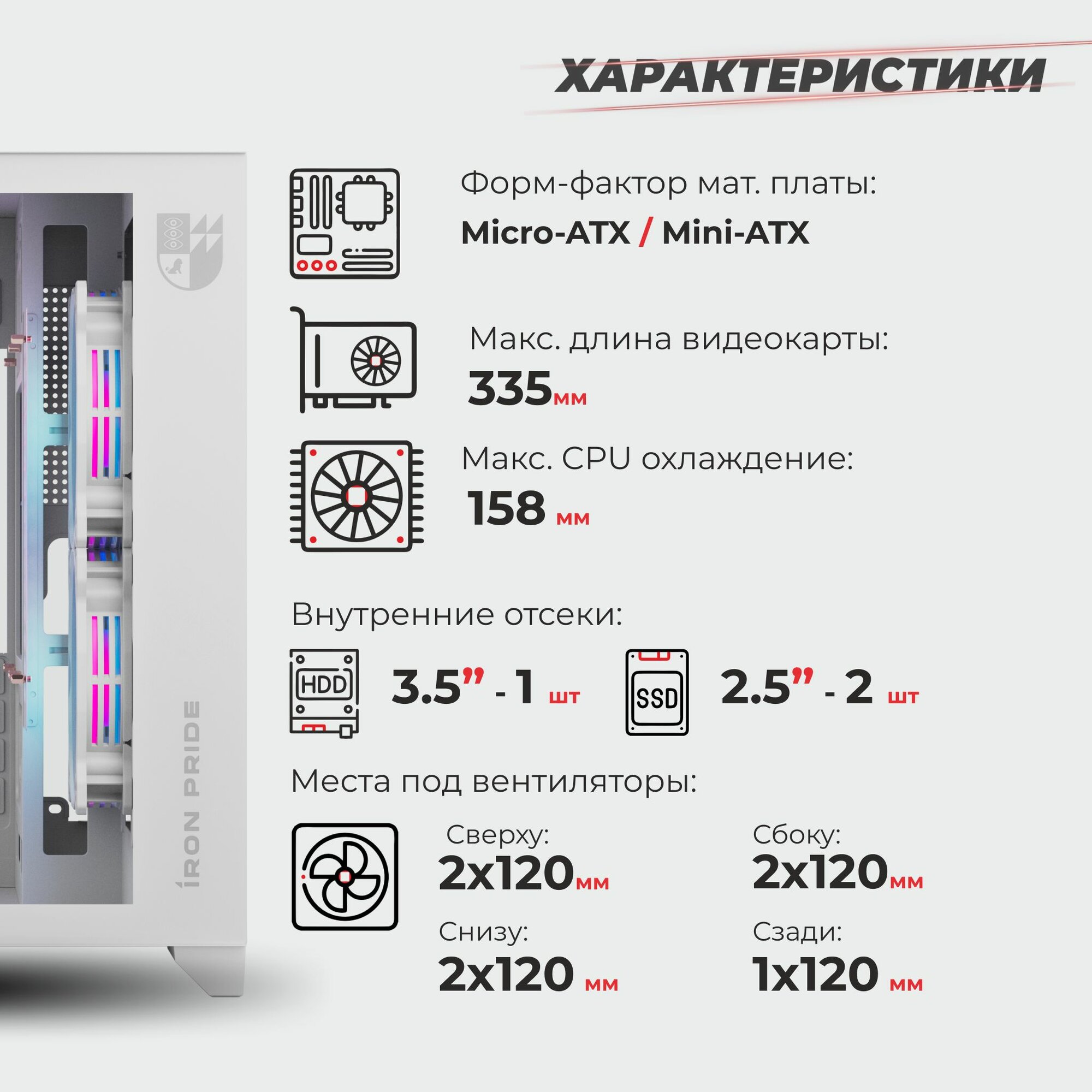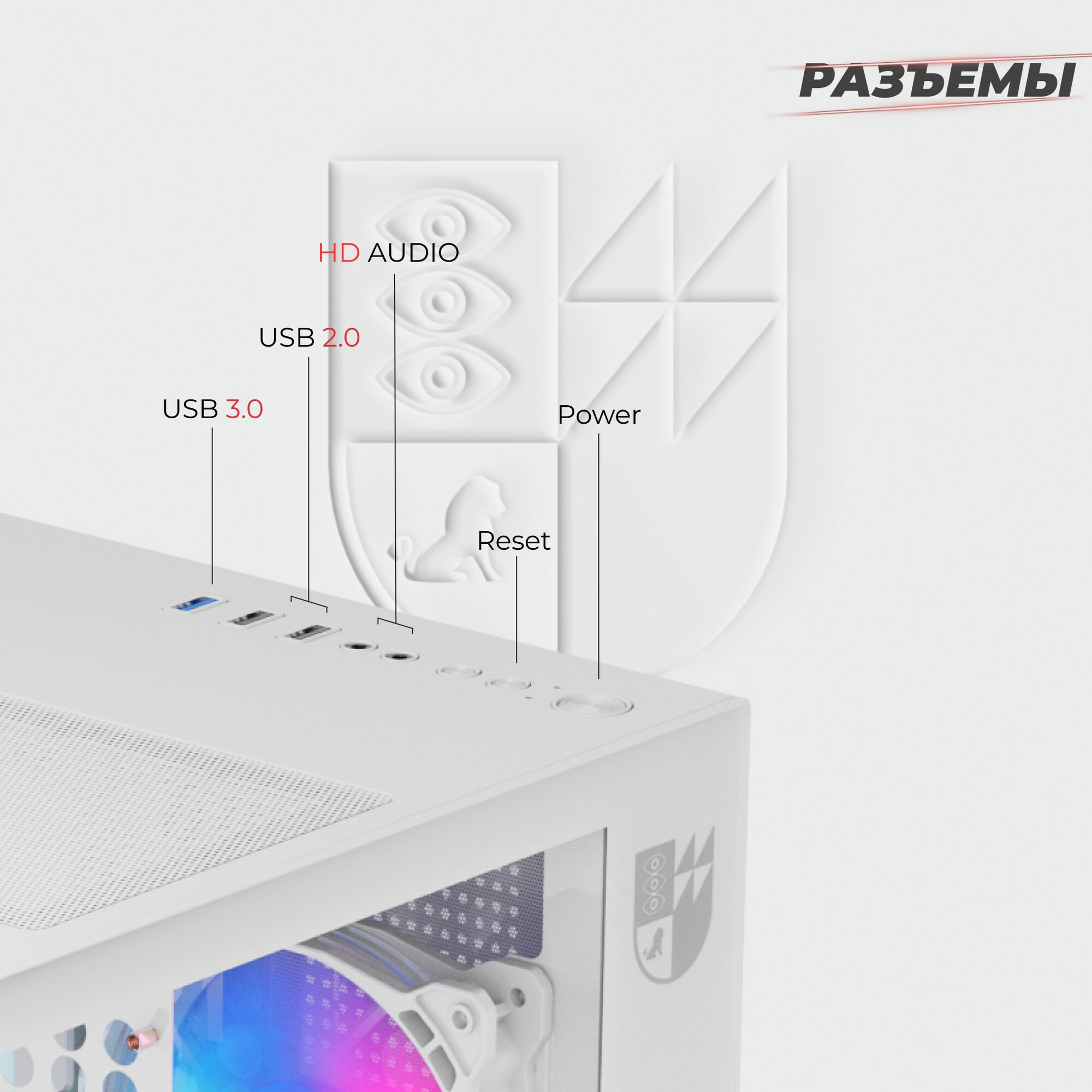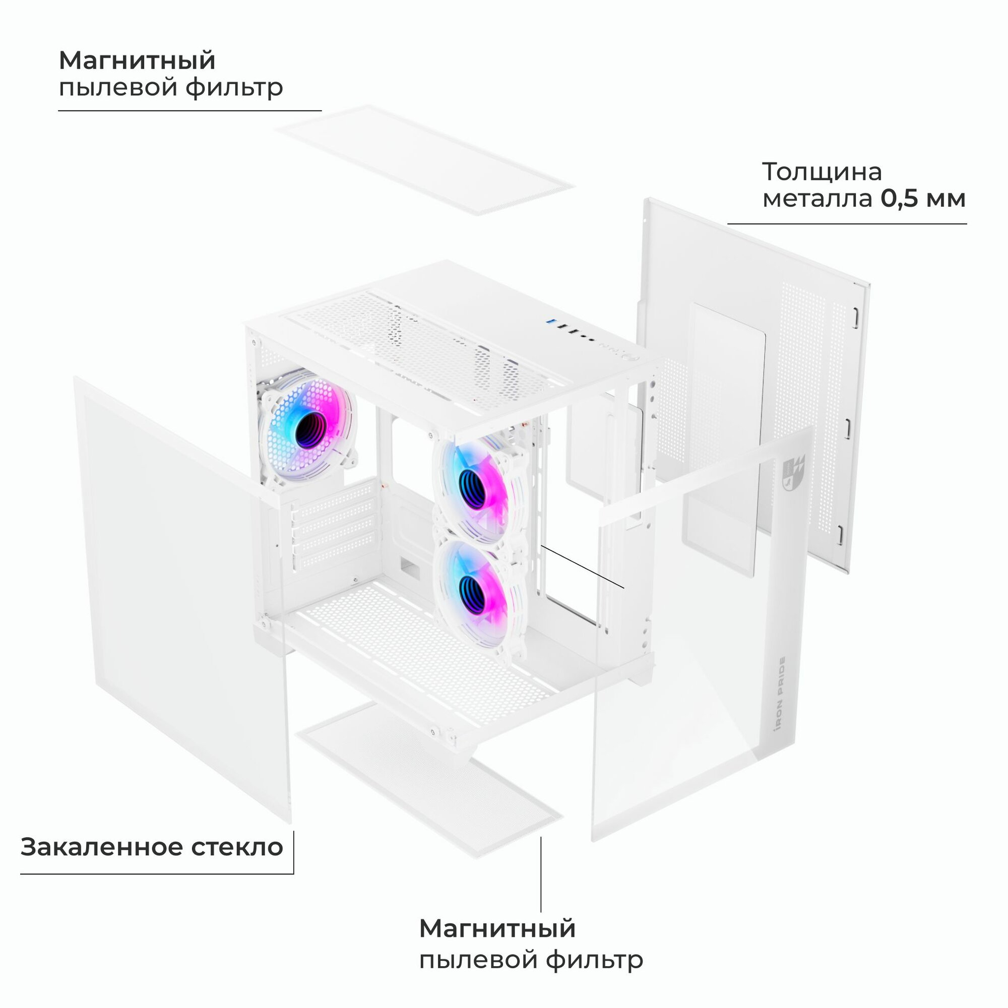 Игровой корпус для компьютера Prime Box Invader Q5 White + 4 ARGB вентилятора + закаленное стекло, ATX, Micro-ATX, Mini-ITX