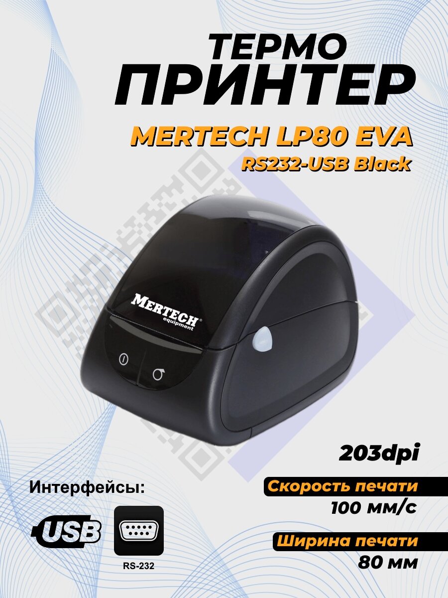 Термопринтер самоклеящихся этикеток MERTECH LP80 EVA RS232-USB Black информация: