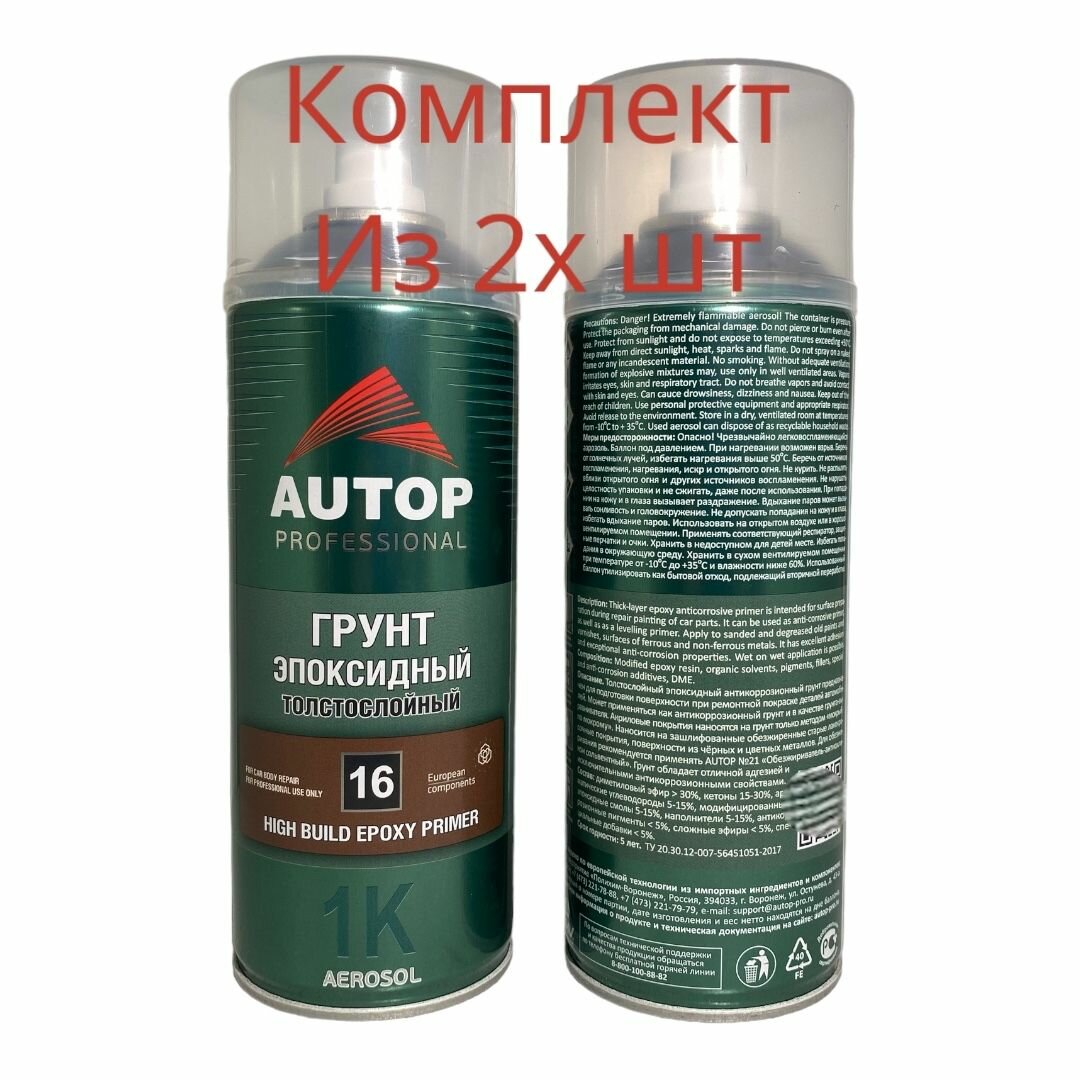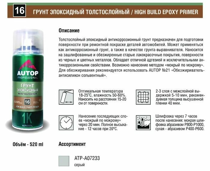 Грунт эпоксидный толстослойный AUTOP №16, серый, баллон аэрозоль 520 мл (2шт) информация: