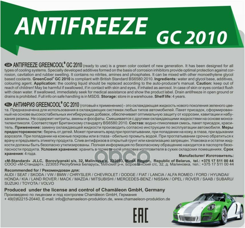 10 цен на Антифриз 5Кг, Gc 2010 Готовый Зеленый, G11, Bs 6580 GreenCool арт. 791661