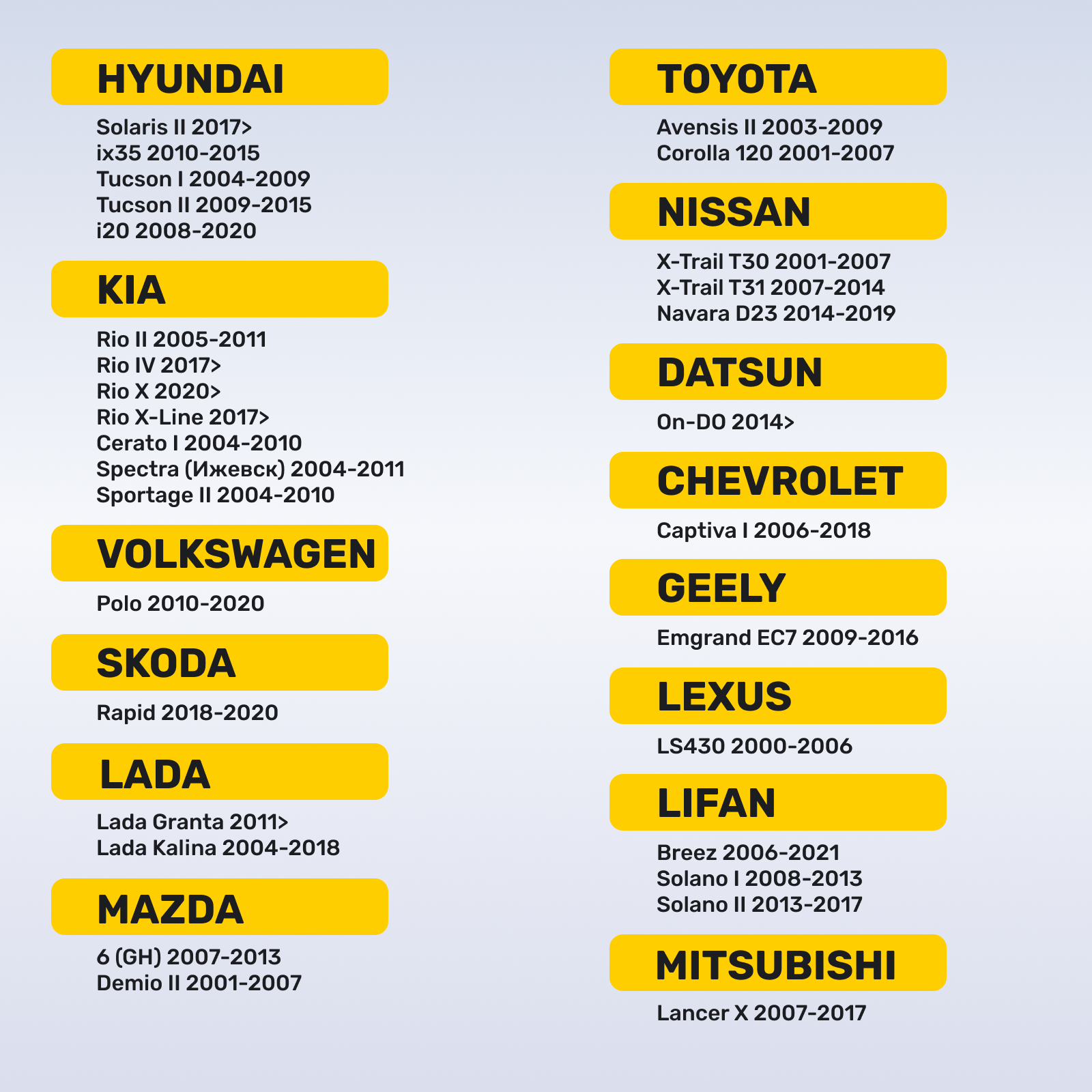 | Вид техники | Внедорожники, Легковые автомобили |