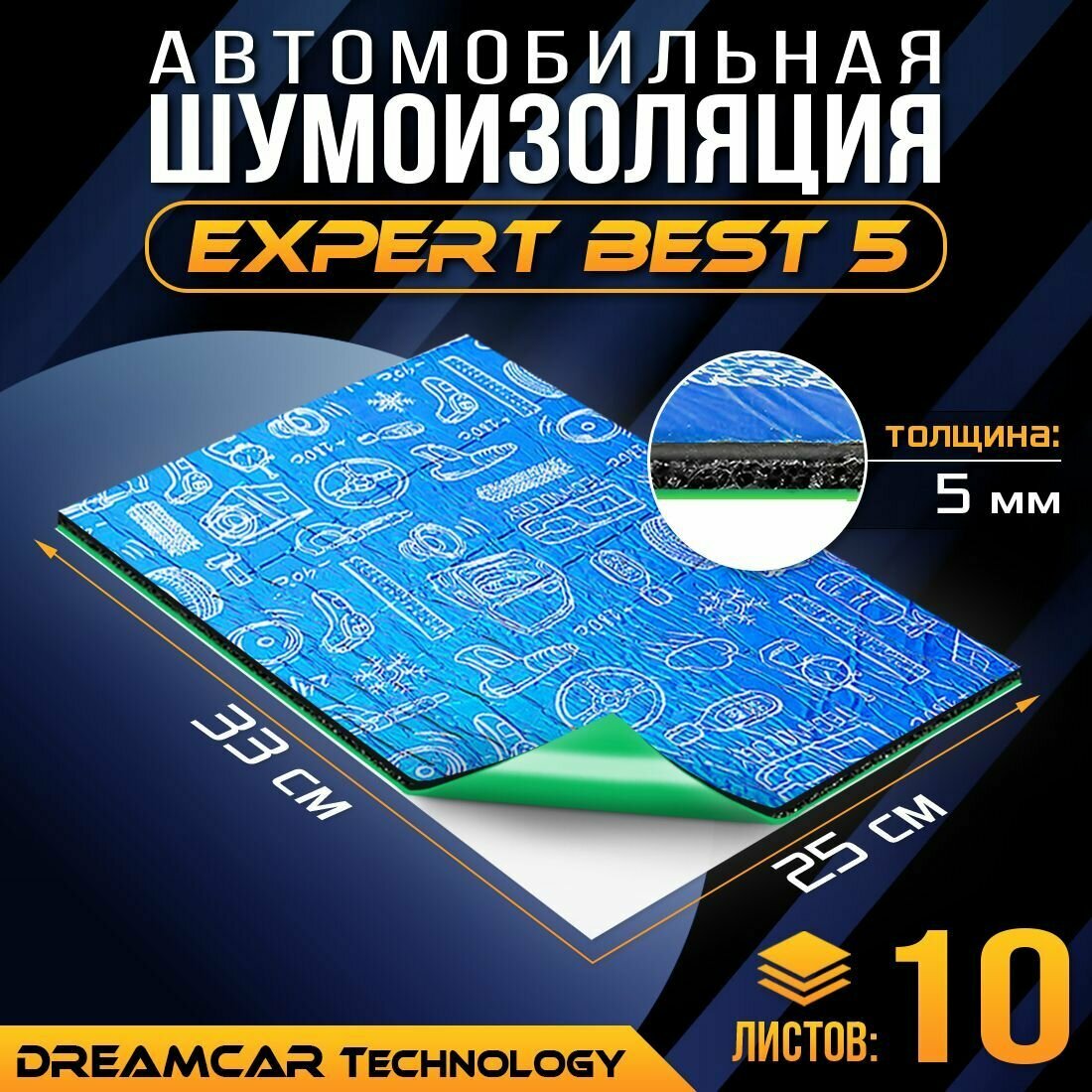 Шумоизоляция для автомобиля DreamCar Expert Best 5 33*25 см, 10 листов, шумка для второго слоя информация: