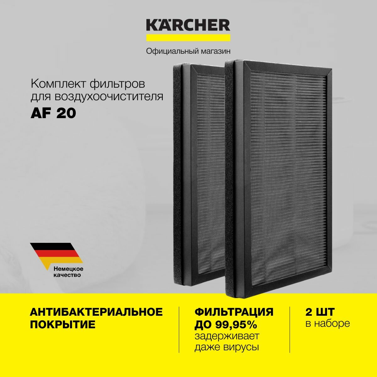 Комплект фильтров H13 для очистителя воздуха Karcher AF 20 2.863-056.0, с добавкой активированного угля и антибактериальным покрытием, 2 шт информация: