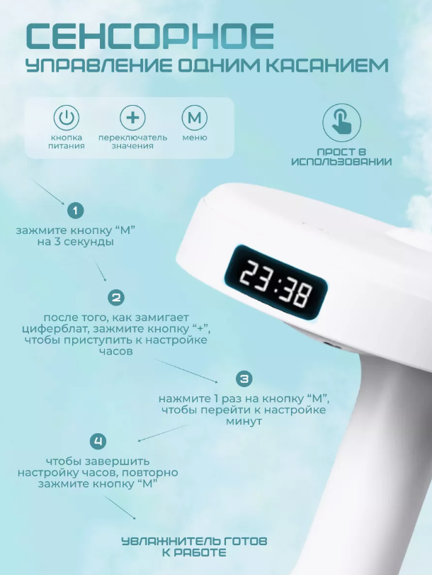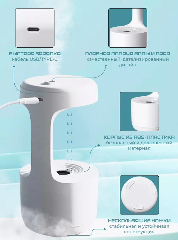 Увлажнитель воздуха для дома мини с подсветкой настольный