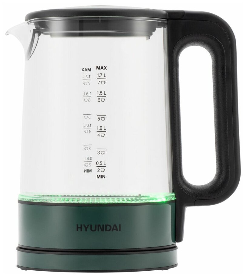 Чайник электрический Hyundai HYK-S4805 темно-зеленый, стекло/пластик