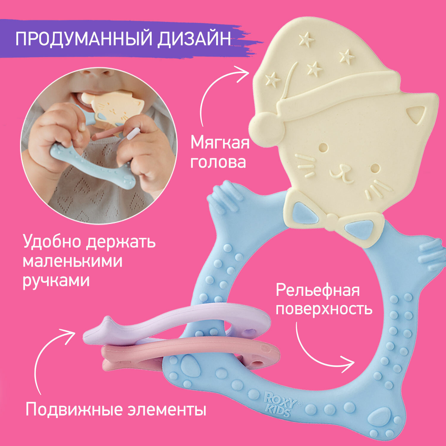 Отзывы на Прорезыватель универсальный для малышей MEOW TEETHER от ROXY-KIDS, цвет голубой