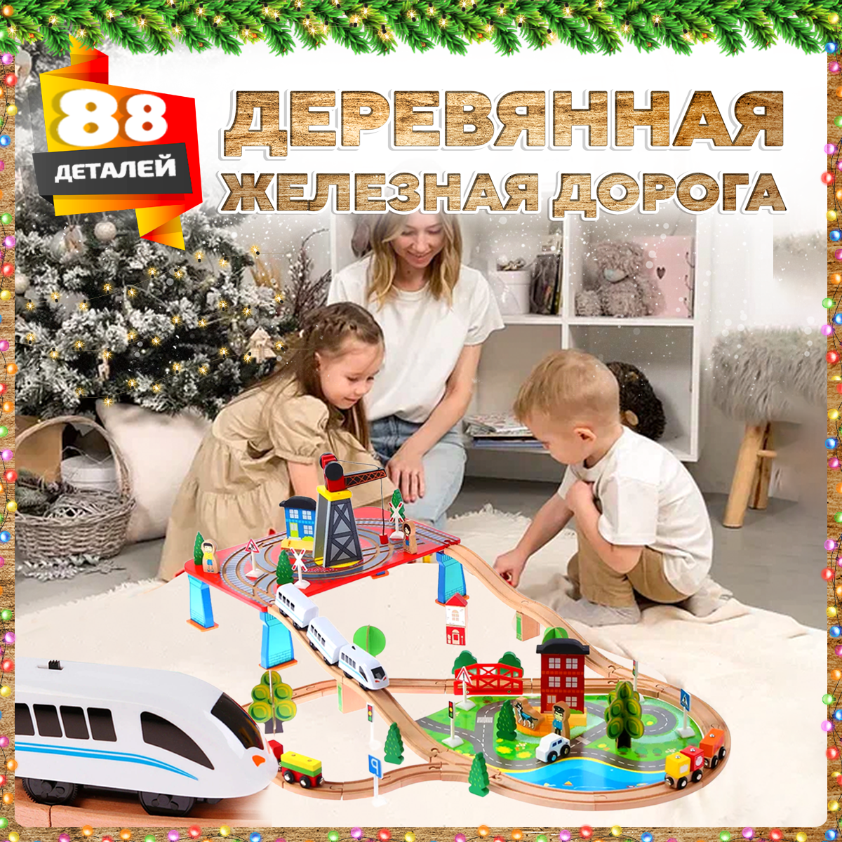 Деревянная железная дорога с краном 88 деталей информация: