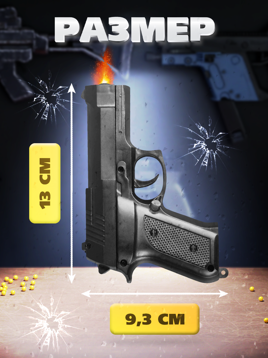 | Дополнительная информация | пистолет стреляет пластиковыми пулями 6 мм на расстояние до 12 м; магазин пистолета вмещает 9 пулек; возраст от 14 лет |