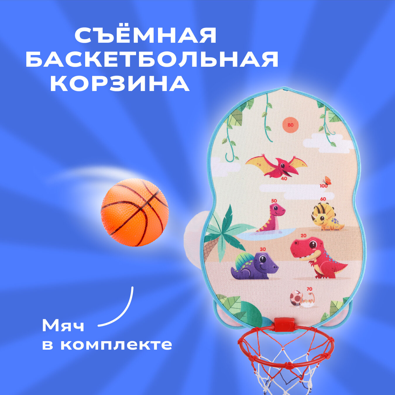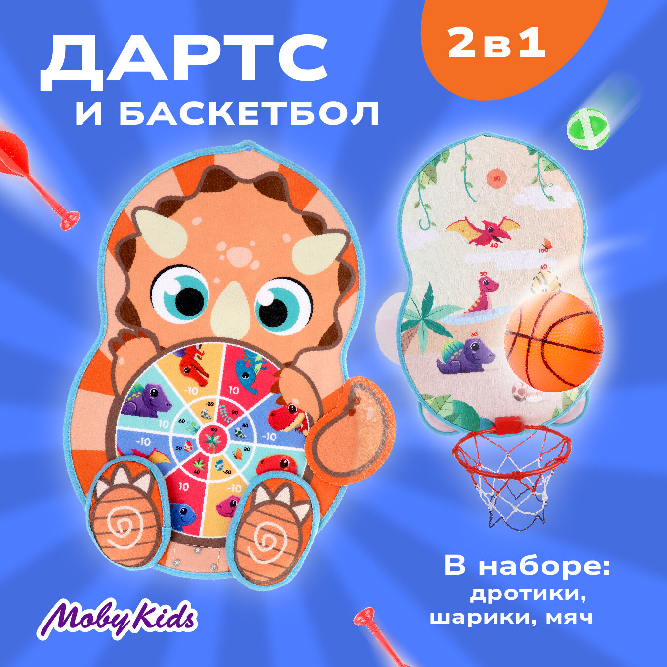 Игра комнатная Дино: Дартс с липучкой двусторонний 21 см. 2 в 1 с баскетбольным кольцом Moby Kids 76872 1 030 ₽