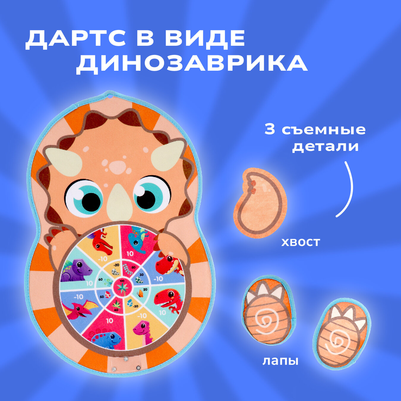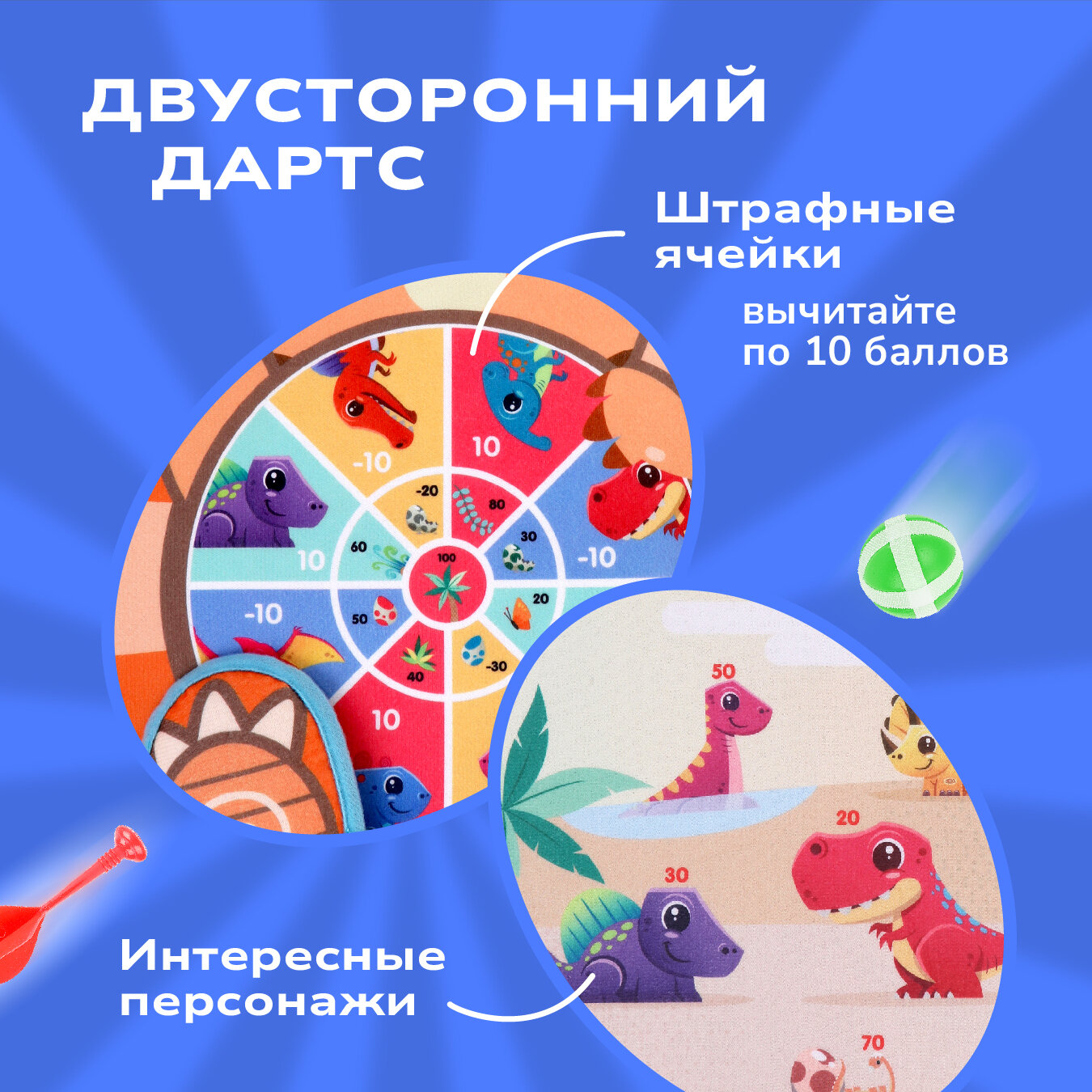 Дартс детский на липучках с дротиками и шариками Дино, 21 см 946 ₽