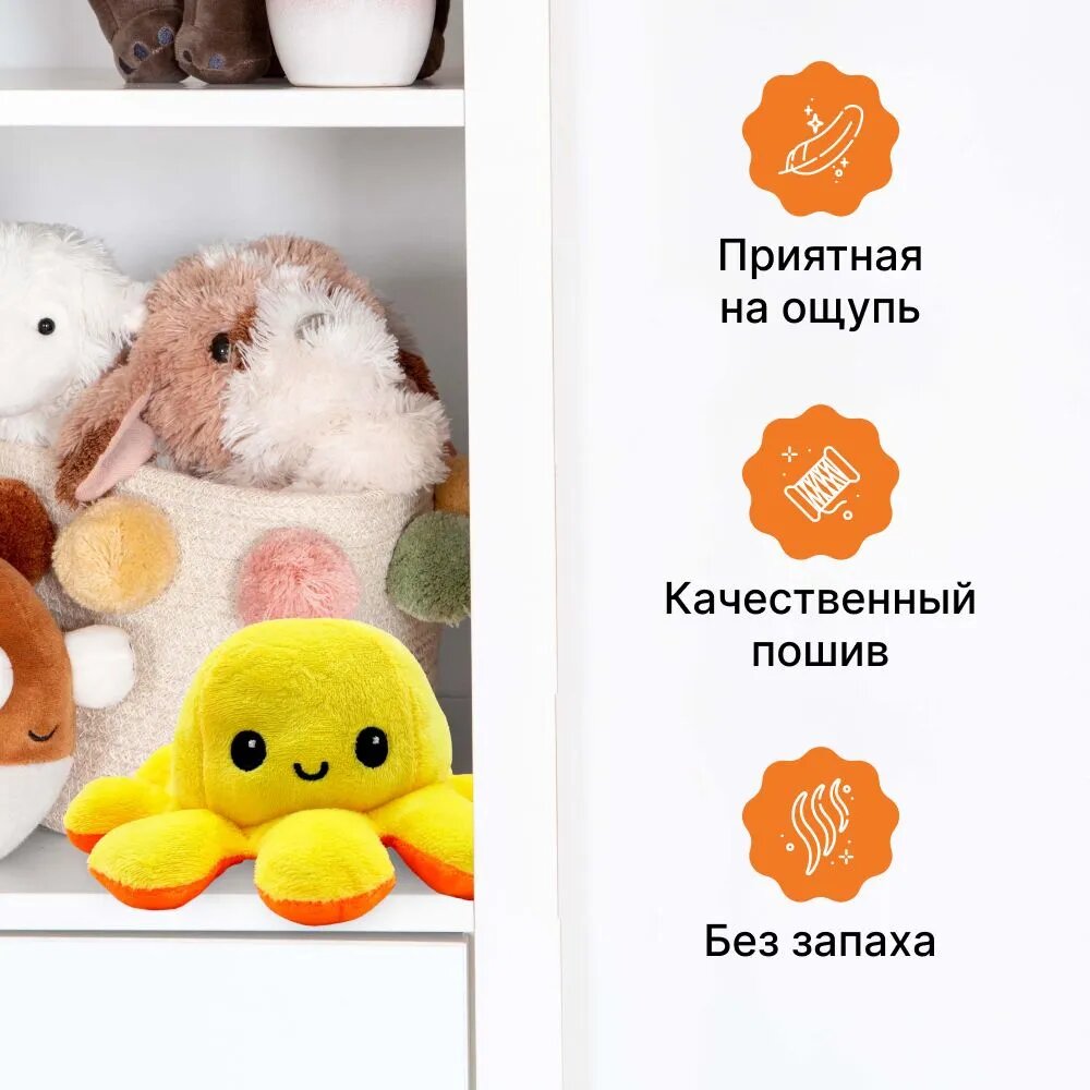 Осьминог перевертыш мягкая игрушка двусторонняя, оранжевый желтый цвет (20 см) информация: