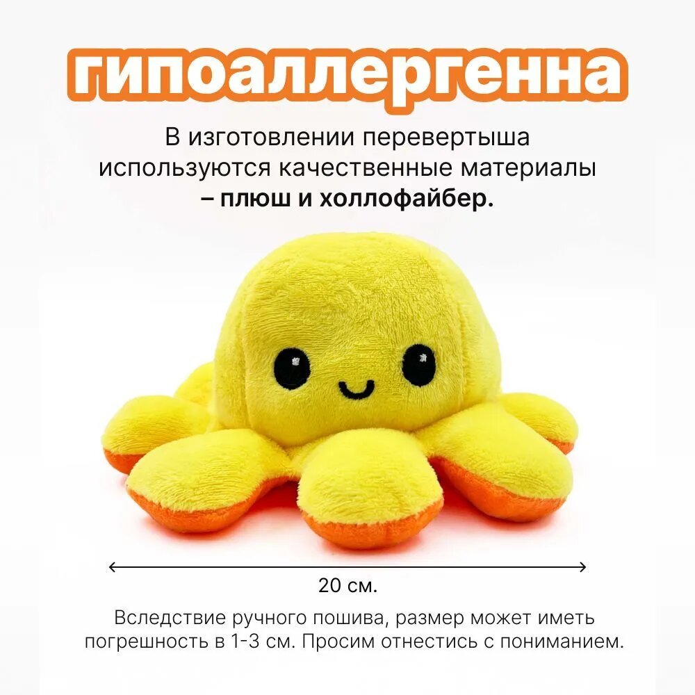 10 цен на Осьминог перевертыш мягкая игрушка двусторонняя, оранжевый желтый цвет (20 см)