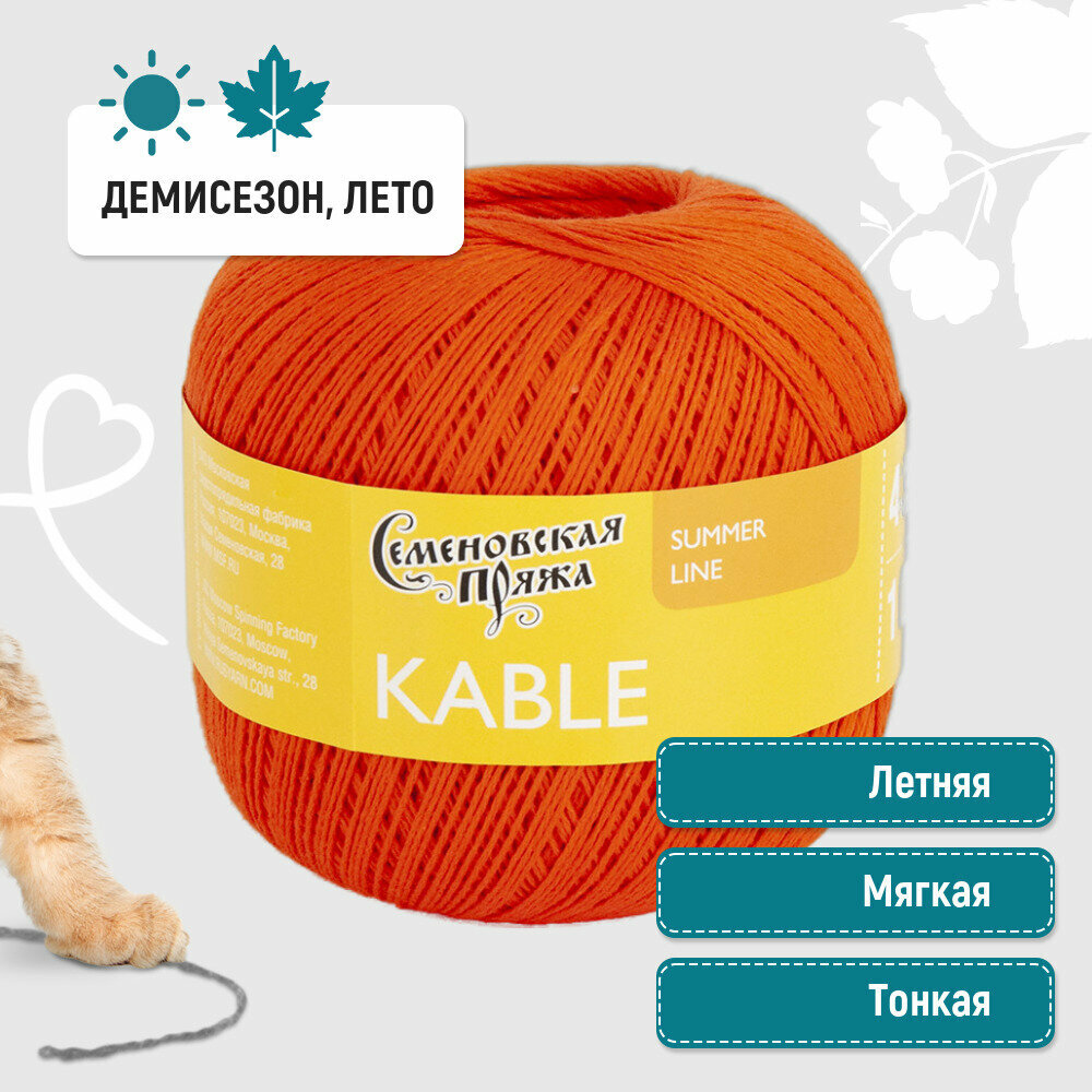 Пряжа для вязания Семеновская пряжа (Kable) Кабле, хлопок 100%, оранжевая 5 шт. цвет 30670 информация: