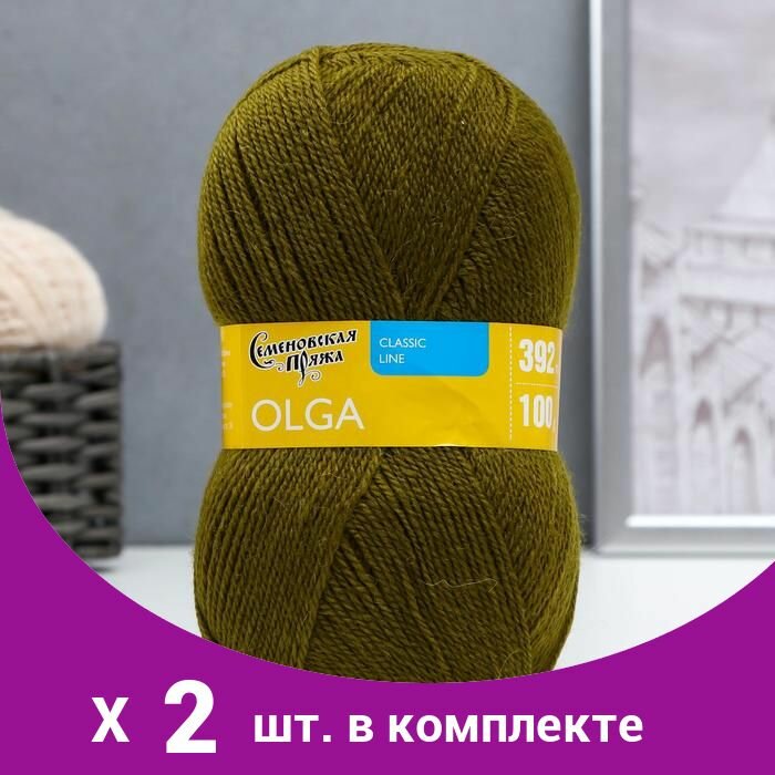 Пряжа Семеновская Olga (Ольга ПШ) липа (345), 50%шерсть/50%акрил, 392м, 100г, 2шт